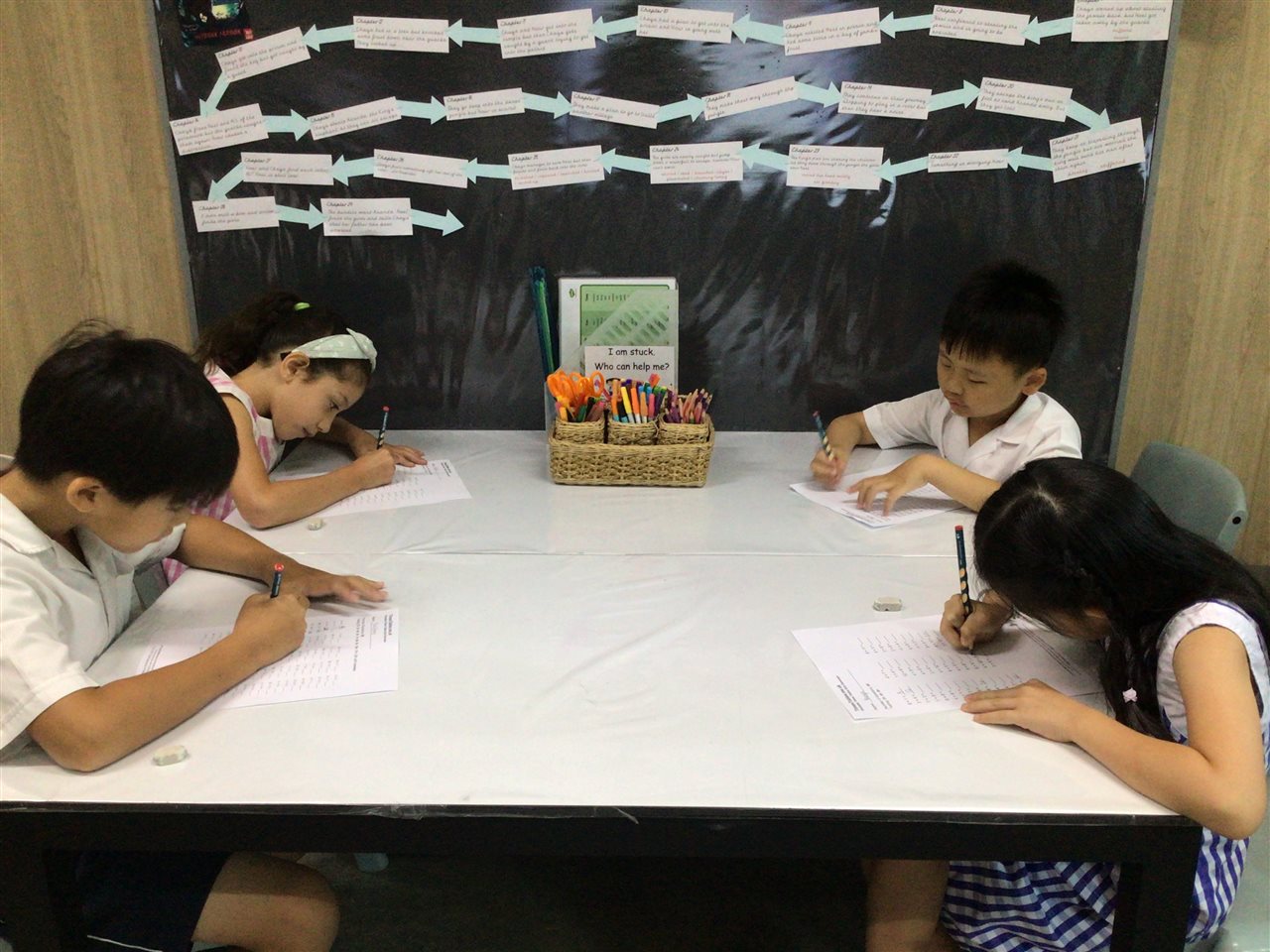 The money raised through Christmas cards sales went towards buying looms in Thomas House to help children learn to weave. The paints donated by Y3 at Christmas were used to create a mural outside the room. They were so happy with the results. Some of the pictures are during construction.