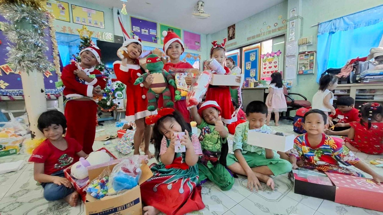 In December 2024, we collected 150 shoeboxes filled with toys and personal hygiene items. Some boxes were given directly to the children at the Patana hosted Christmas Party whilst others were delivered to other children at The Mercy Centre.