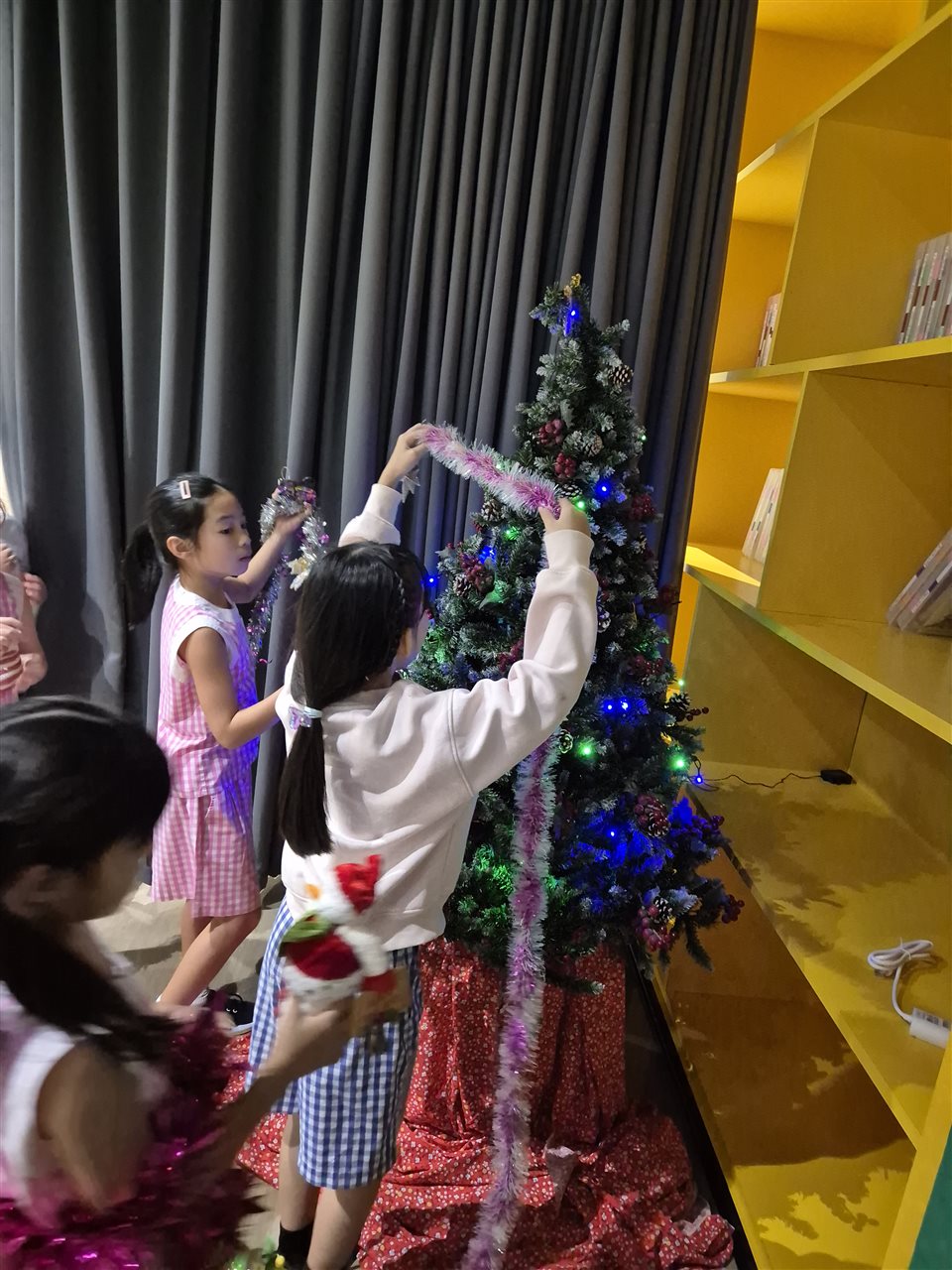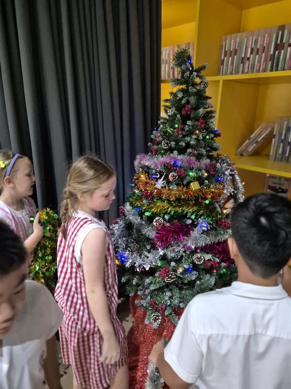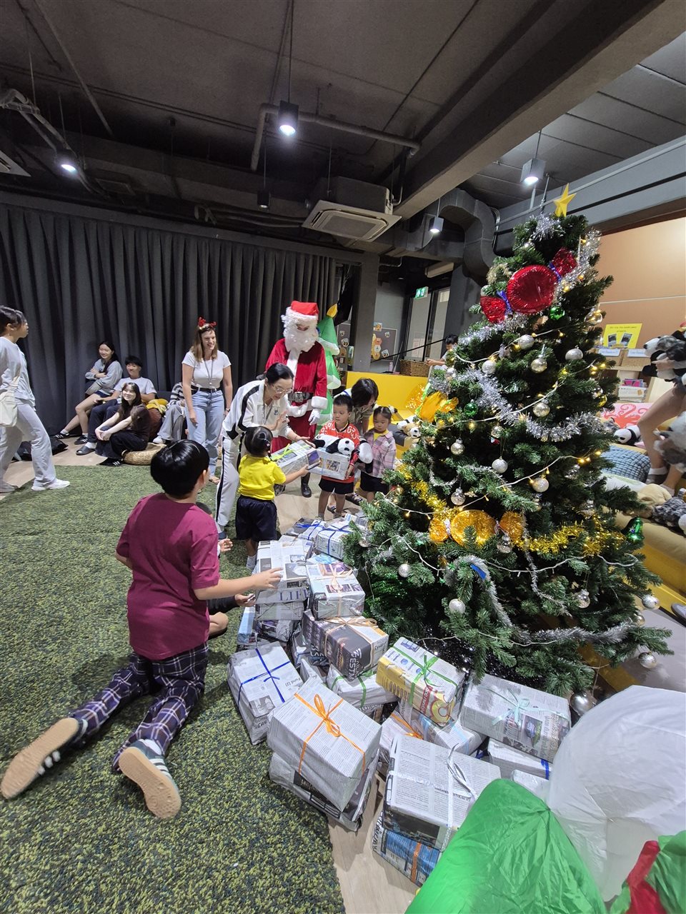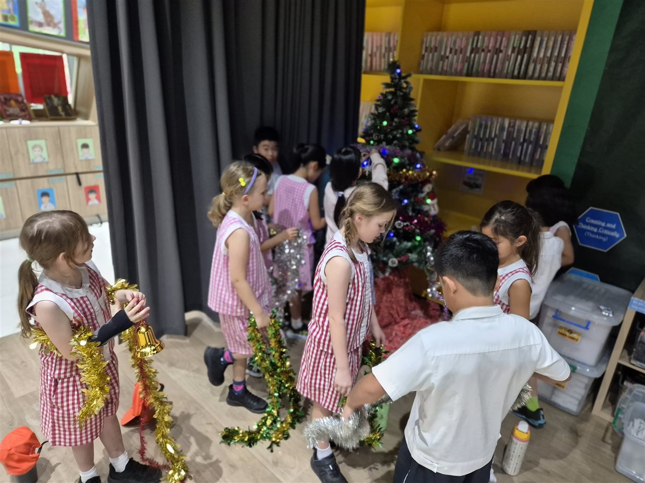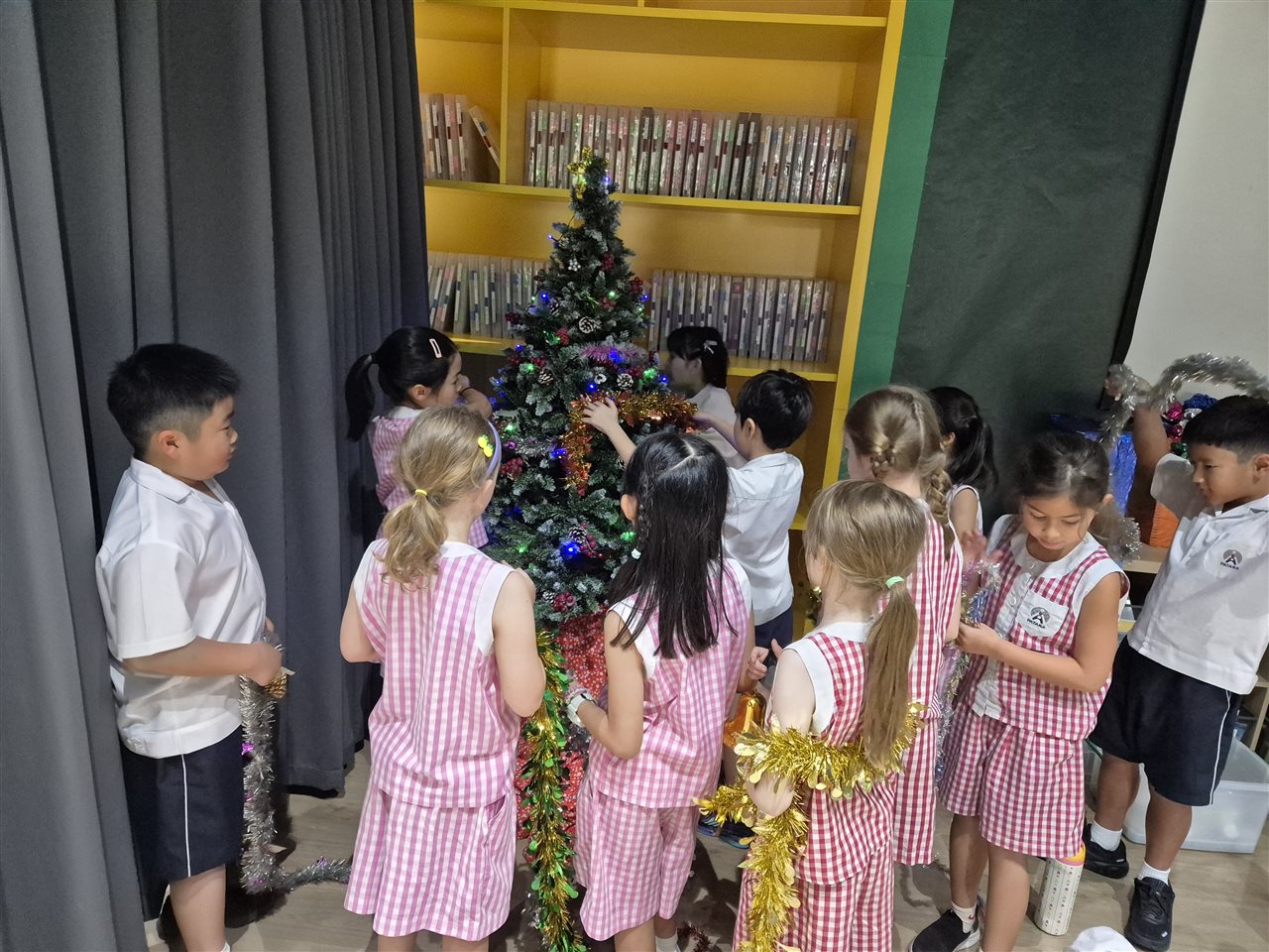 From mid-November, the shared area filled with excitement as students brought in their shoeboxes. Each box contained toiletries, stationery, a small toy, and a personal note—simple but thoughtful gifts chosen with care. As the Christmas tree went up, the growing collection beneath it became a cheerful reminder of the kindness within our community.