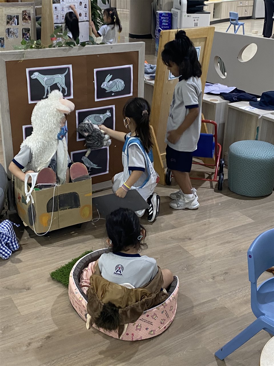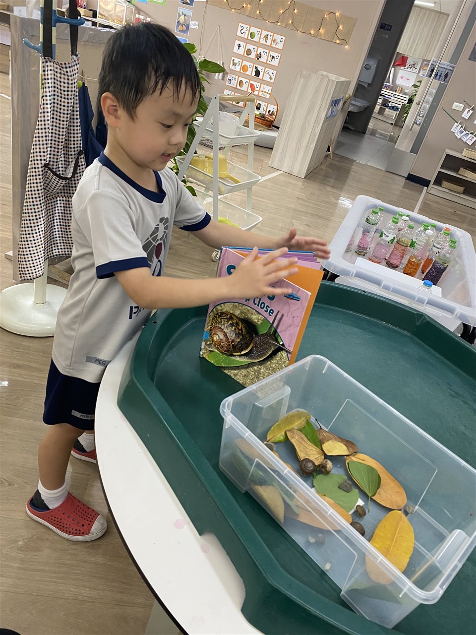 Caring for our new friends has made FSP interested in looking after animals and we now have a vet surgery in our roleplay area. The children have enjoyed making appointments, helping the animals feel better and moving them around in the animal ambulance! The children were so involved in creating the area and deciding what we needed to care for animals. This has also lead to bringing in some snails from outside in our garden to observe inside. The children have enjoyed gathering leaves, grass and flowers to make a suitable habitat for the snails!