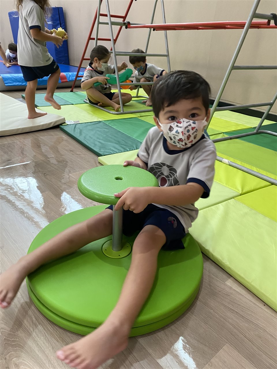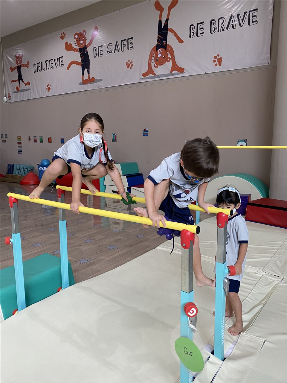 It was then time for free choice. The children love when they get to choose their learning. Many of the FSP children spent lots of time playing on the gymnastics bars and rings. We saw hanging monkeys, slithering sloths and crawling bears on the bars! Other children loved riding the bikes, practicing to throw and catch and also dancing in our dance area. All the children had a wonderful morning in our gym.