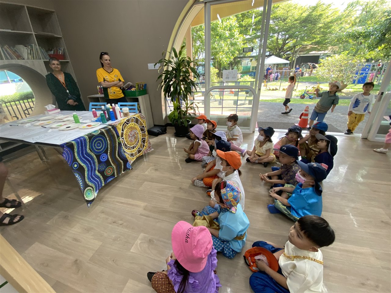 The children looked fantastic in their Traditional Thai clothes. They had lots of fun making Krathongs, playing Mon Son Pa and riding banana leaf horses around the garden. We carefully floated our Krathong's in the reflection pool and the pond by the Sala to end a very busy day at school. Please share any photos of Loy Krathong celebrations at home on Seesaw so we can continue discussions at school.