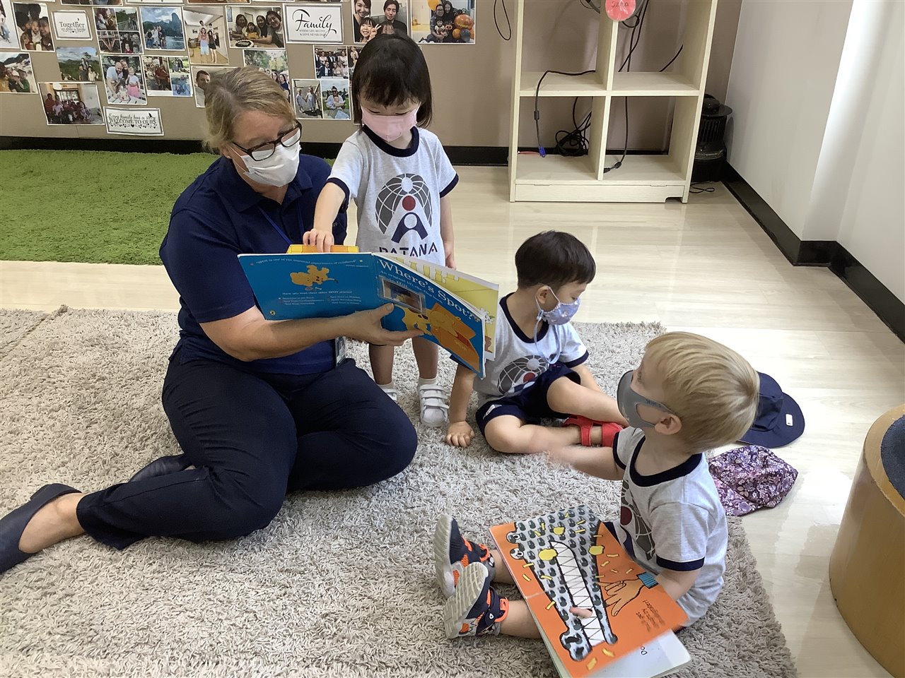 We are creating learning moments using stories. Sometimes we encourage children to choose their own book from the basket and sometimes we are 'sharing' a story in a smaller, group. The important thing is, asking the children to explain why they chose? Our youngest learners may not always be able to explain yet, so we can offer them a scaffold of words...