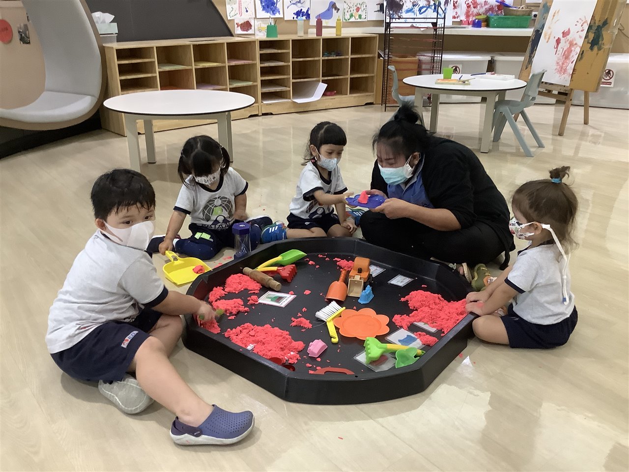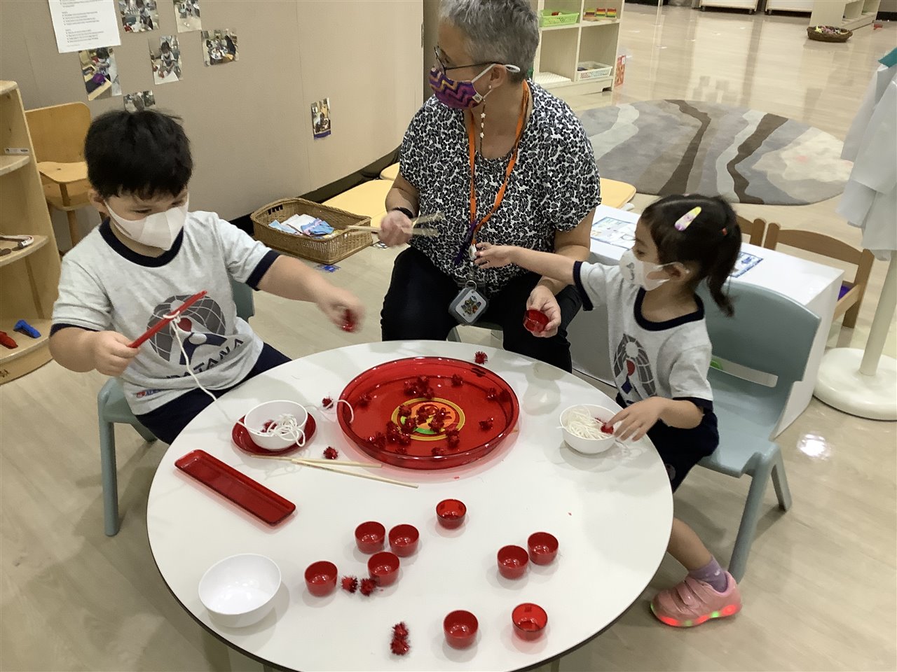 2. Making Lunar New Year inspired red and gold slime - a fabulous way to develop sensory play, observing details and making connections with scientific changes, but also not forgetting the value of understanding a recipe, following instructions and speaking about our results!