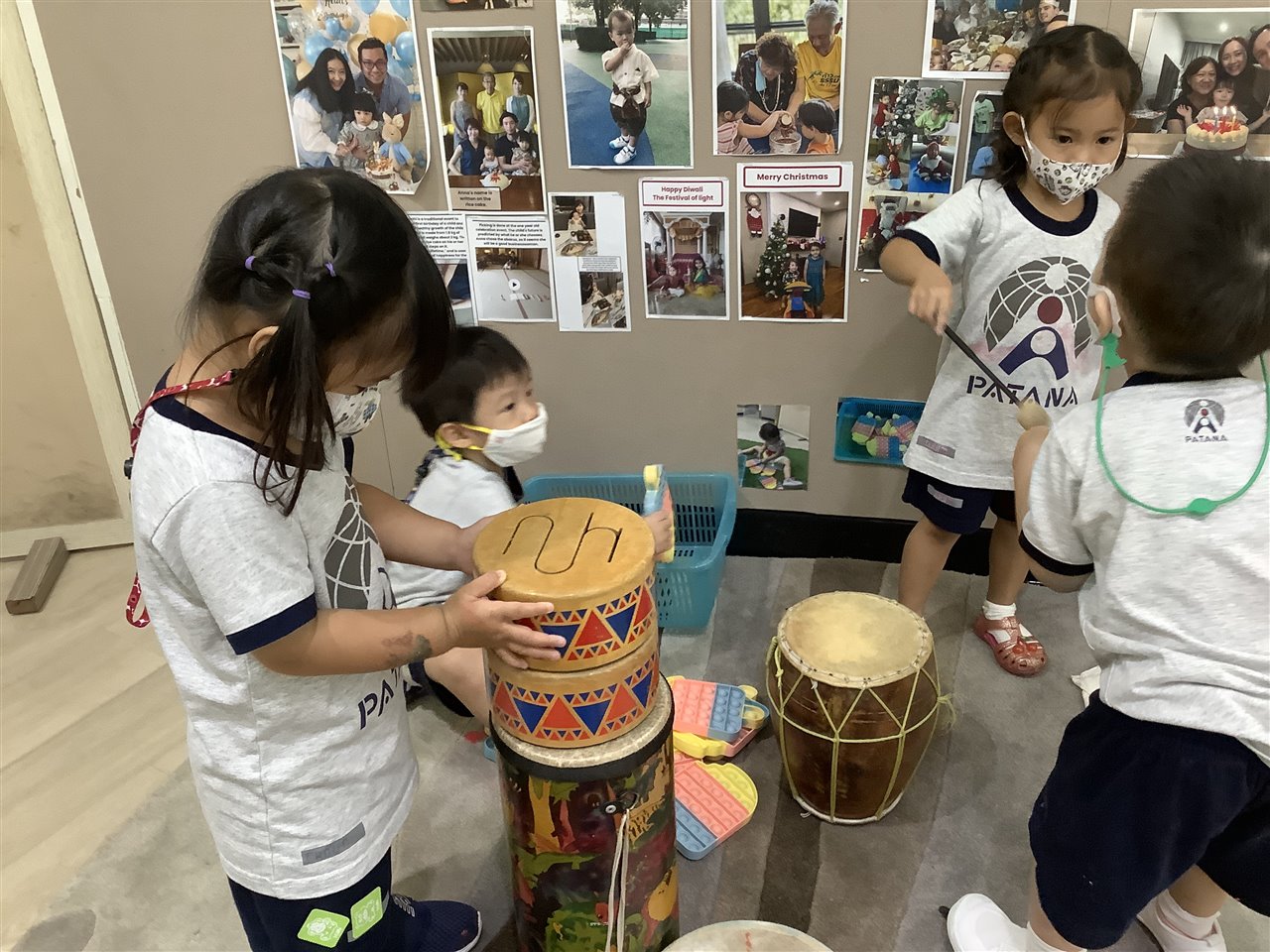 We have enjoyed a visit from the lions, we watched how they dance, jump and move and we had a try at being the lion too. Some children enjoyed the music of the drums and explored the different drums and the sounds they made. Our ever resourceful children decided that even though our lion was very friendly, it was a good idea to feed him and luckily enough one of our new drums looked just like a huge lion sized lollipop! Our week culminated on Friday with dress up day...how spectacular do we look?
