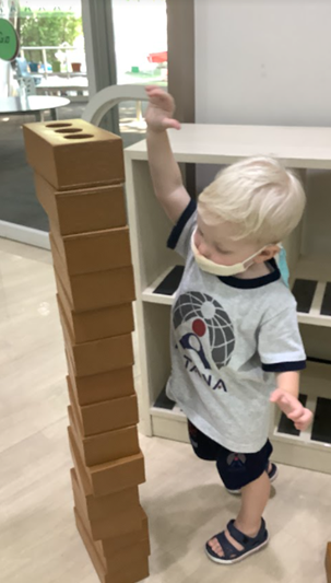 Towers are so exciting to build. Young children especially enjoy the ‘risk’ factor that accompanies a tower. When it begins to wobble as it grows taller and taller, the anticipation of the eventual collapse is great fun! Children will begin to recognise that stability is a key feature of a successful tower. They may begin to notice that some shapes are better than others if you would like the tallest tower. Using bigger blocks at the bottom means that your construction is more secure. Using a flat surface is a better choice, although a slope can create an awesome roof!