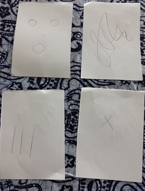 Any marks that your child makes are meaningful. We want the children to be able to explain their symbols to you. It doesn’t matter if the numbers are not recognisable to us as we are in the early stages of representing numbers. It could be dots, circles, lines, pictures or any marks that your child has used to represent numbers.