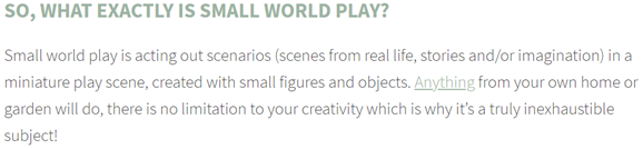 Small world play is a fantastic tool for supporting children’s development in the early years. Used as a story prompt or scene for the retelling of a favourite book, it can be invaluable in helping young children make sense of literacy in a kinaesthetic way.