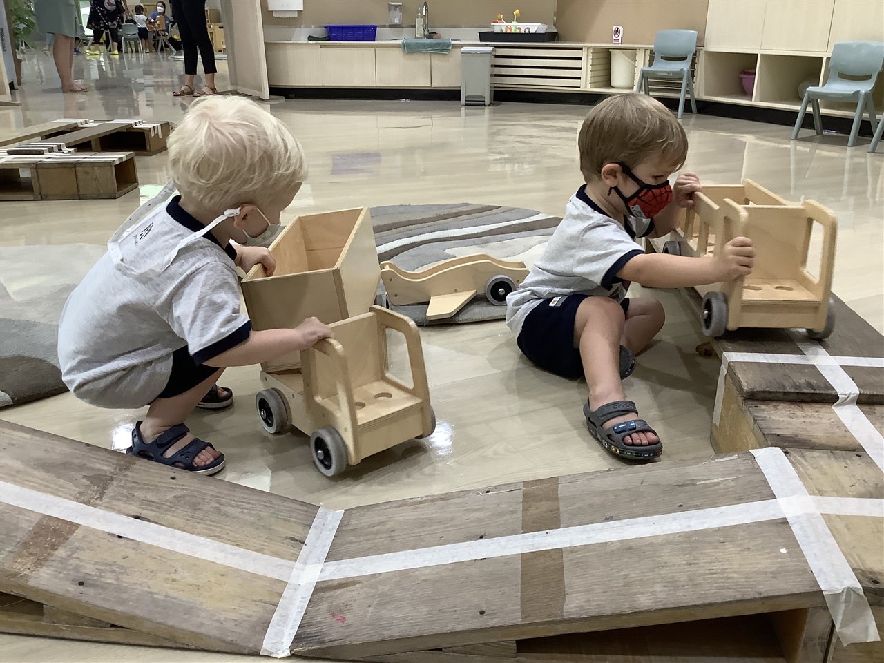 In nursery we have a ‘home corner’ a place where we can be imaginative and creative. We also love role play cooking in our outdoor kitchen.