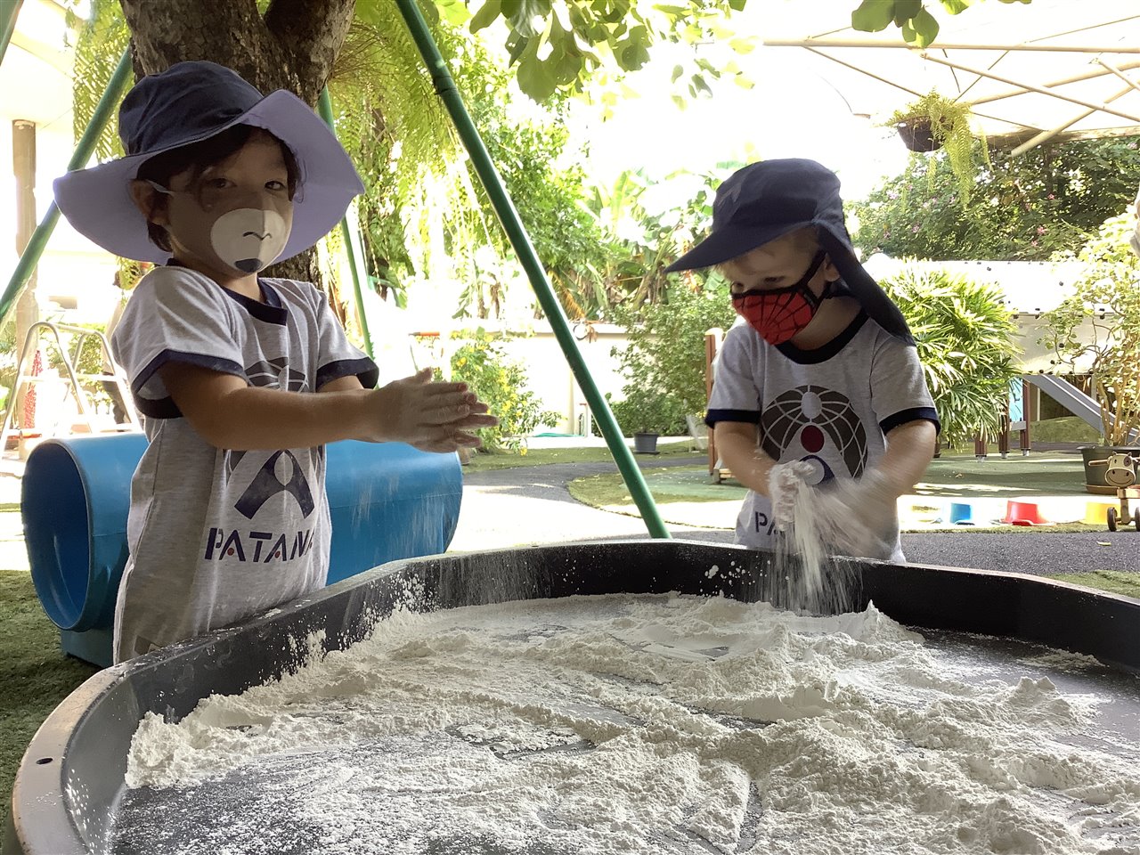 We have really enjoyed sensory play in the sand, the water and the coloured rice.