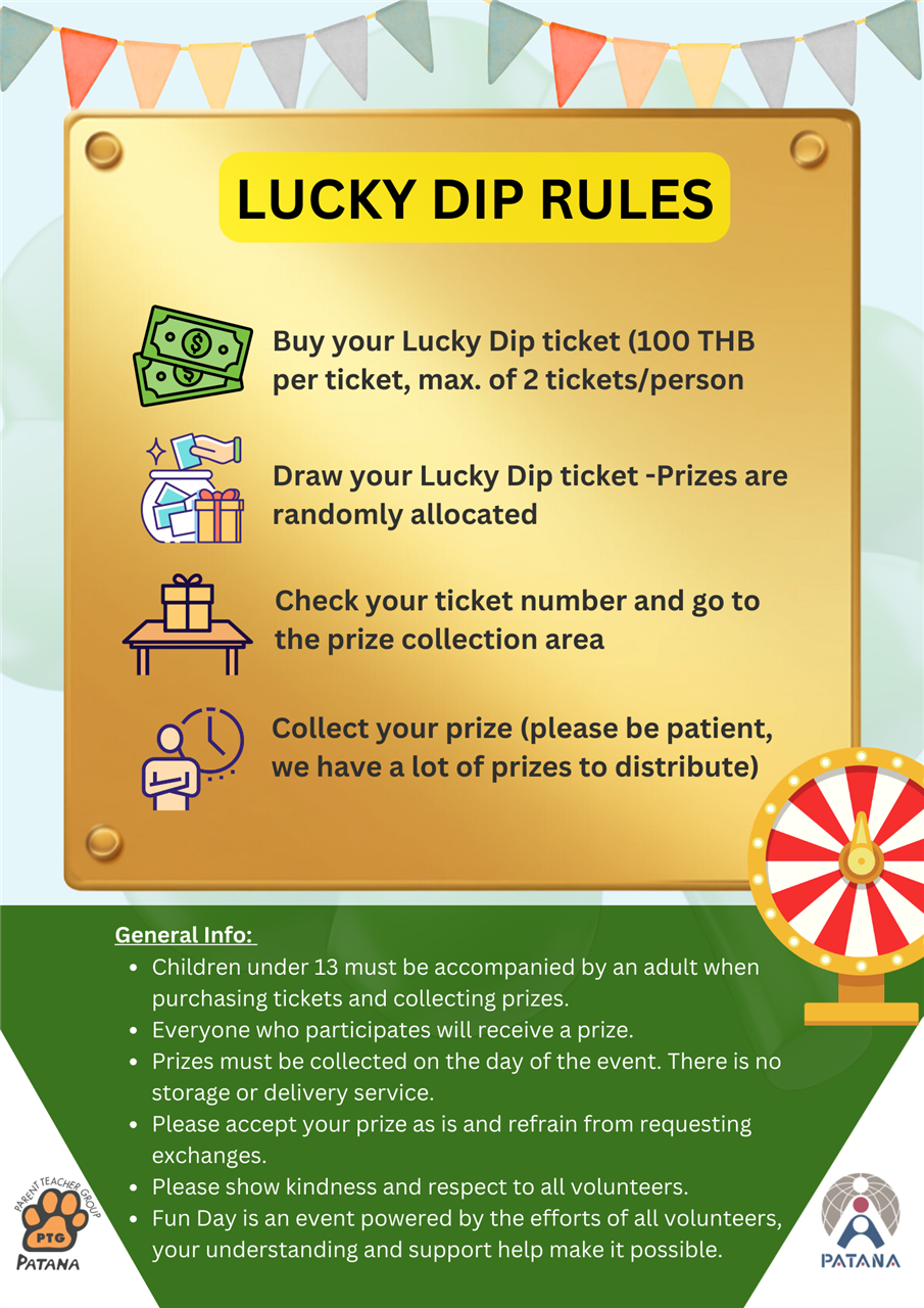 Come to the lucky dip booth on Fun Day to draw and claim your prizes!