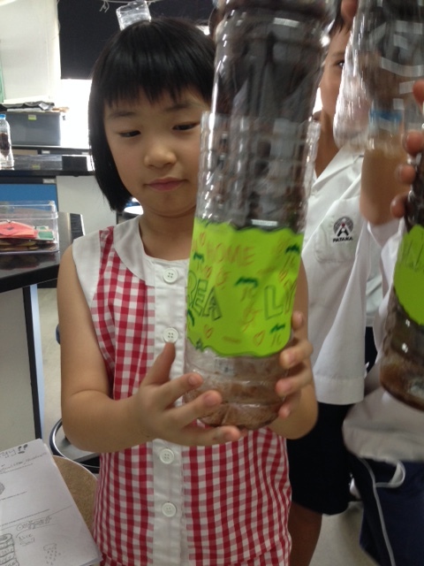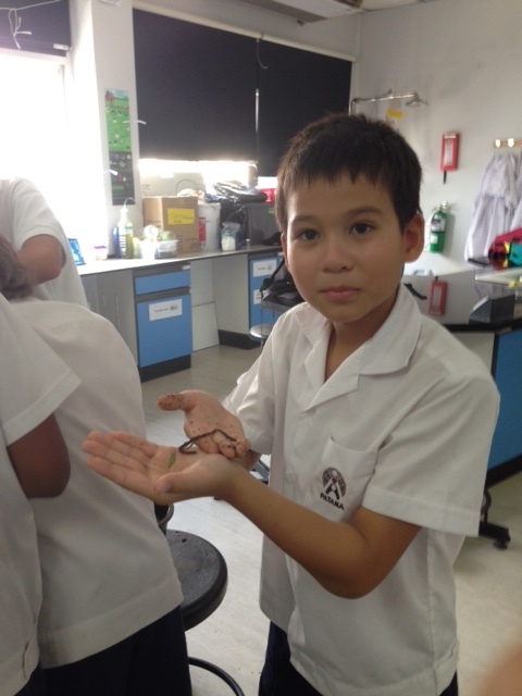 What is particularly impressive is how some students, who are a bit nervous about the worms and their wiggly sliminess, have really challenged themselves to hold worms (small ones at first) and get used to them. The other really impressive thing is that they all are very caring about the worms and want to learn how they feed and reproduce, how long they live, and what their cocoons look like. We could spend the whole term just learning about worms, but coming next, we will learn to build a compost pile using the waste grass clippings from our playing fields.