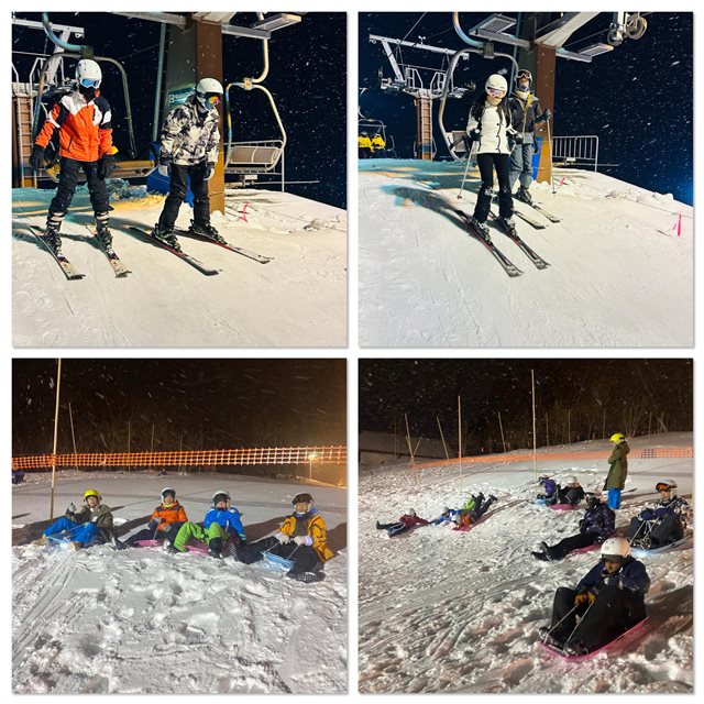 This evening's dinner was Taco Tuesday which went down a treat. Students then headed back out to the slopes for a choice of night skiing or sledging. We were a little worried about how motivated they'd be after a cold day on the piste, but they all genuinely loved it. Lucilla, Paro and Will spent the evening racing, whilst others attempted 360's on their skis or in and out of slaloms.