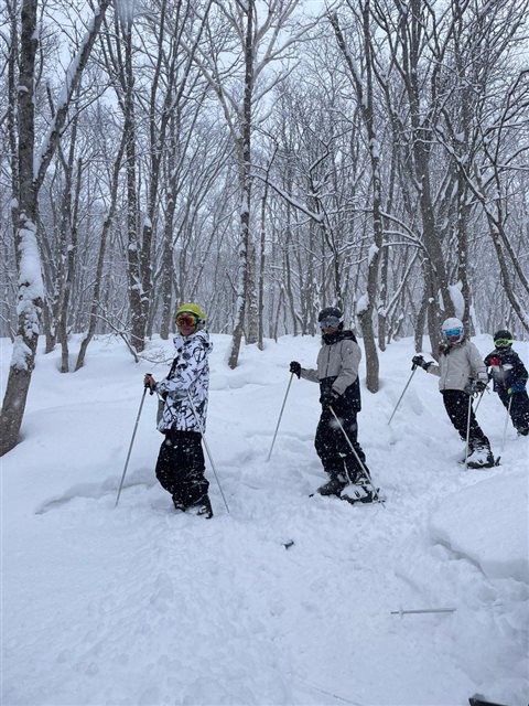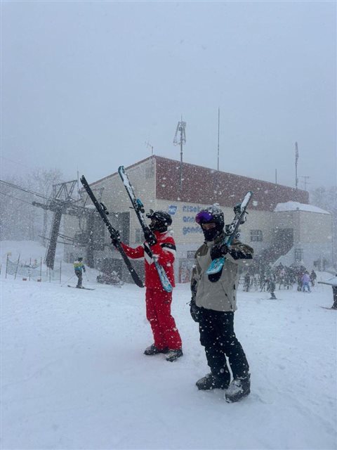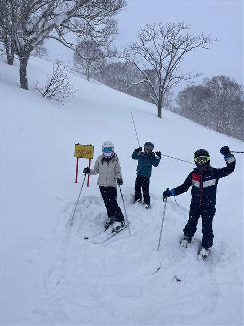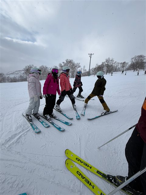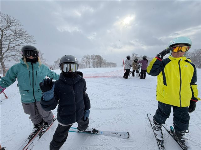 What a day on the mountain! Day two brought us proper Winter Niseko weather—low visibility that had us skiing through clouds, but mercifully not the biting cold that sometimes accompanies it. If there's one thing we've learned today, it's that our students have spirit in abundance.