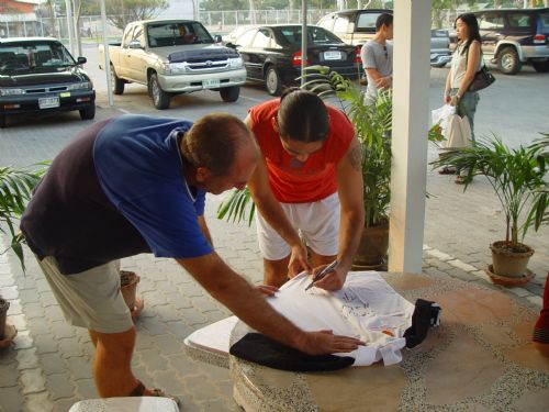 Marcelo Rios (former ATP no.1) and Taylor Dent practice before the first Thailand Open tournament back in 2003.