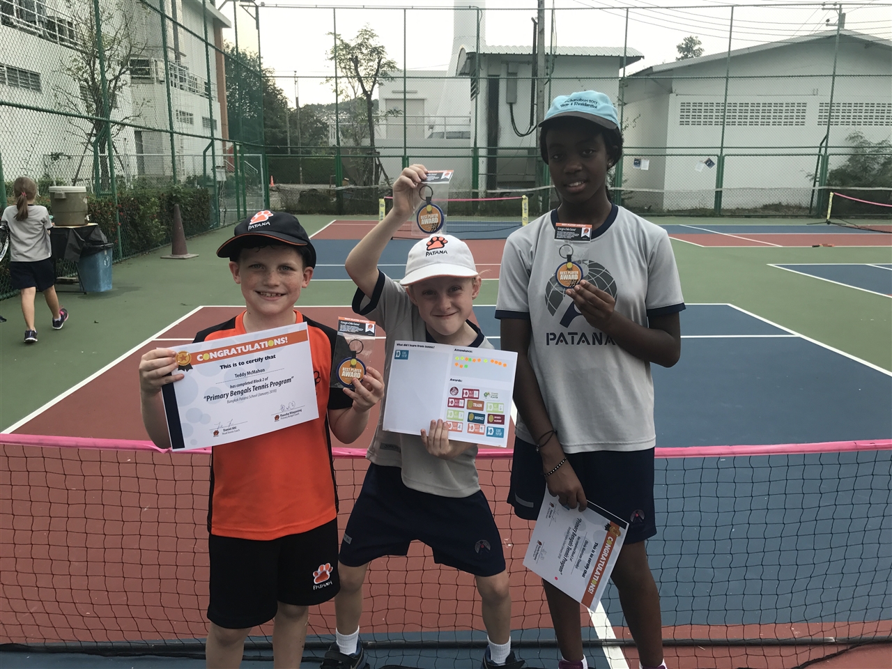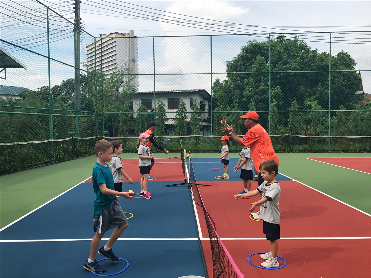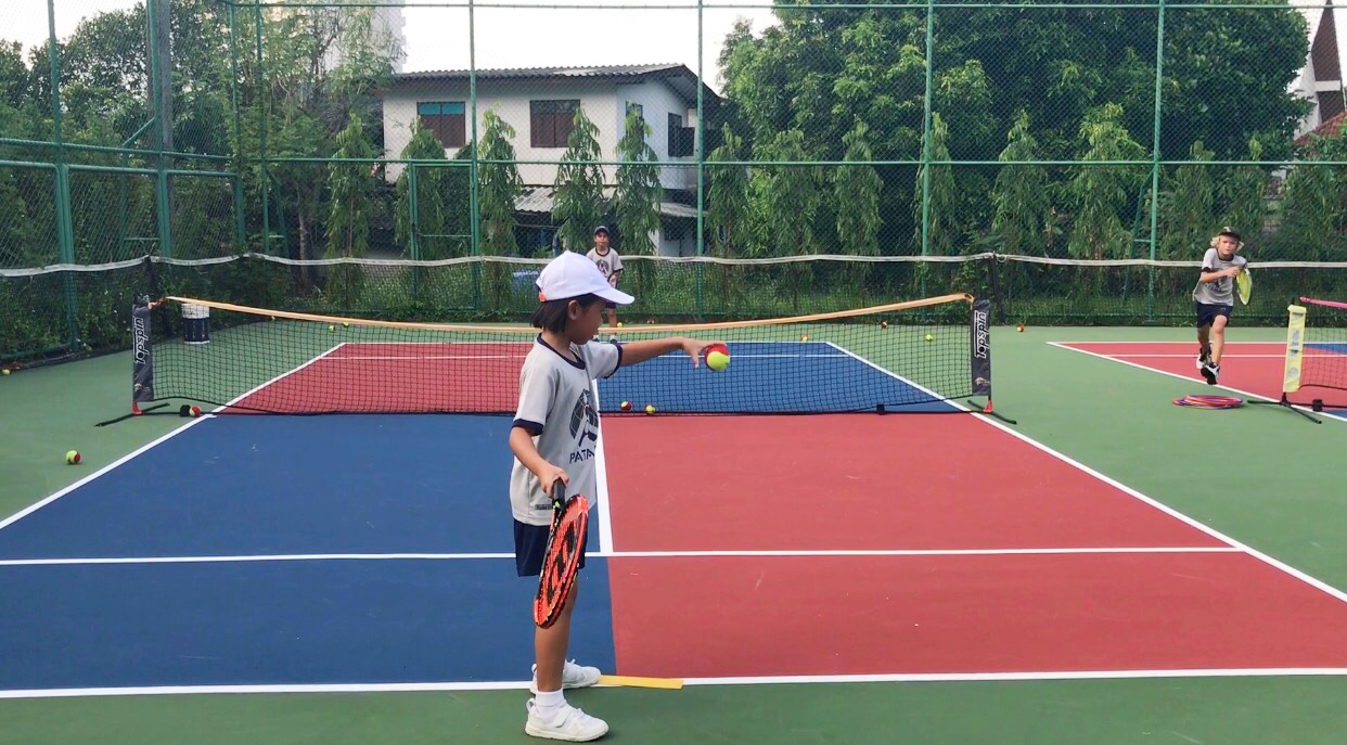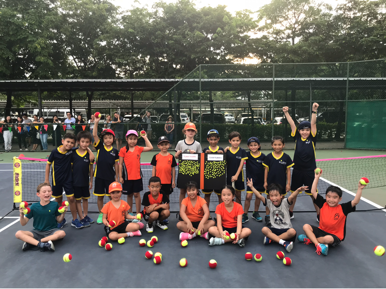 In our primary tennis programmes, we are using the ITF's tennis 10's system. This system using low compression balls to give the students the ability to learn how to rally themselves and make the game more rally based where they can enjoy the game and hit with different levels of ability, that in most cases could not be performed using the yellow ball on the full court.
