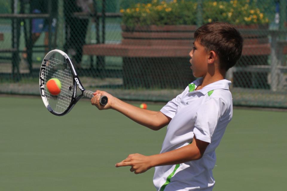 - Play most groundstrokes above optimal strike zone (in line with, and above the head)
