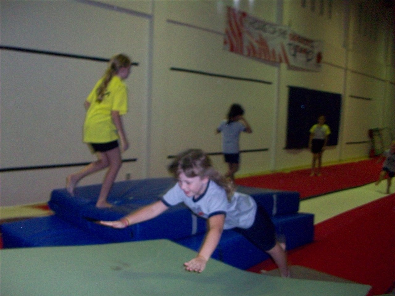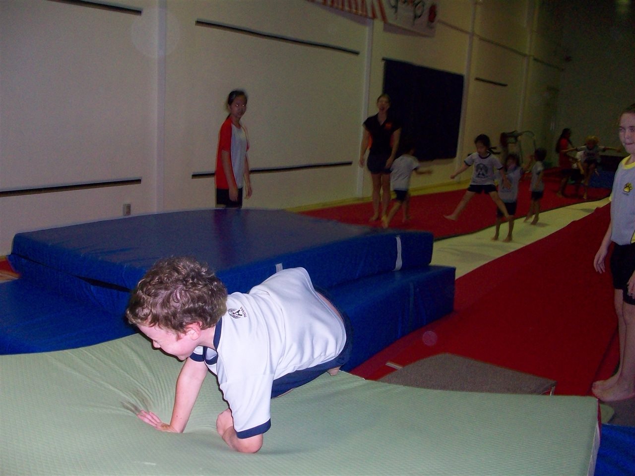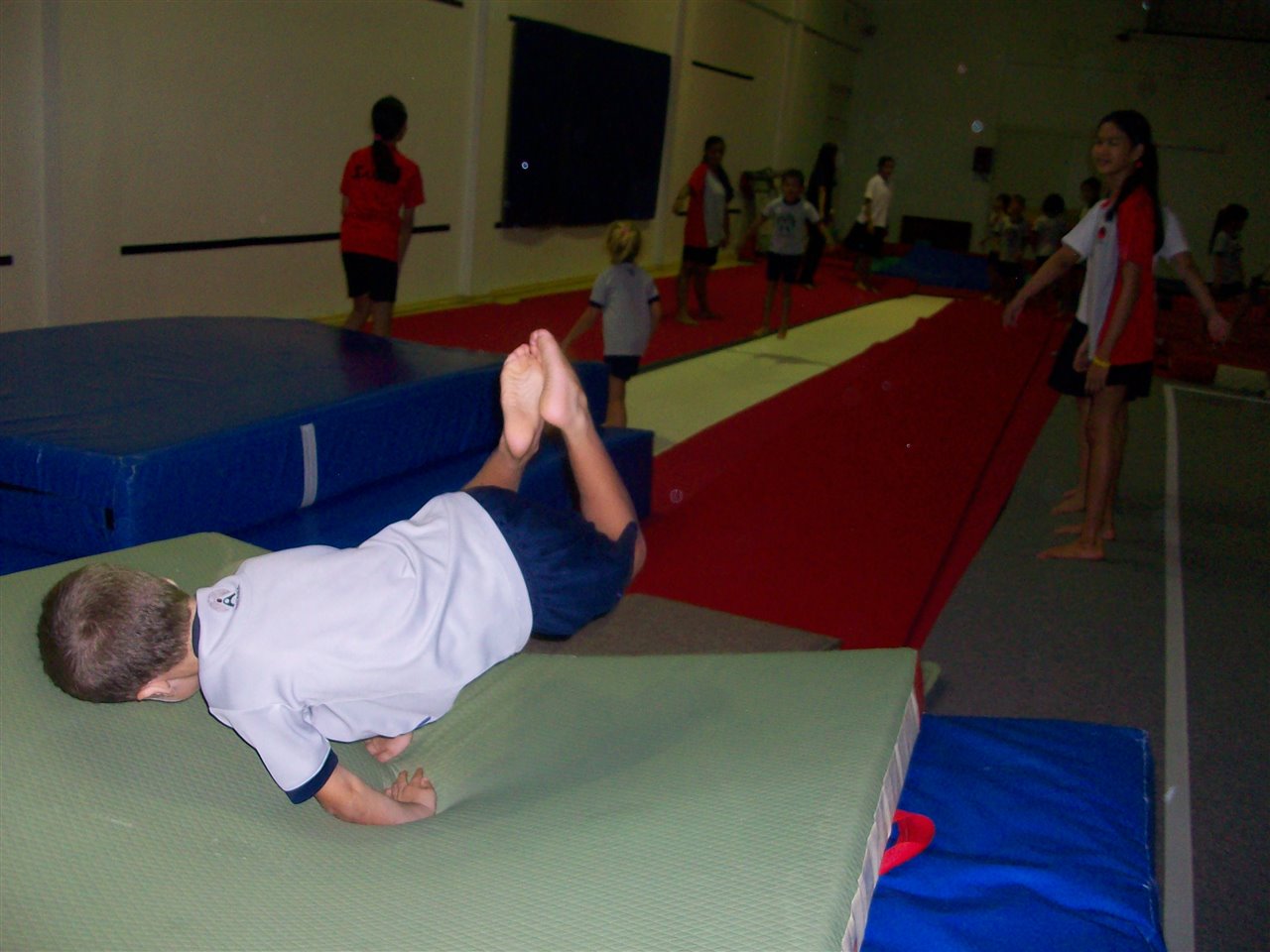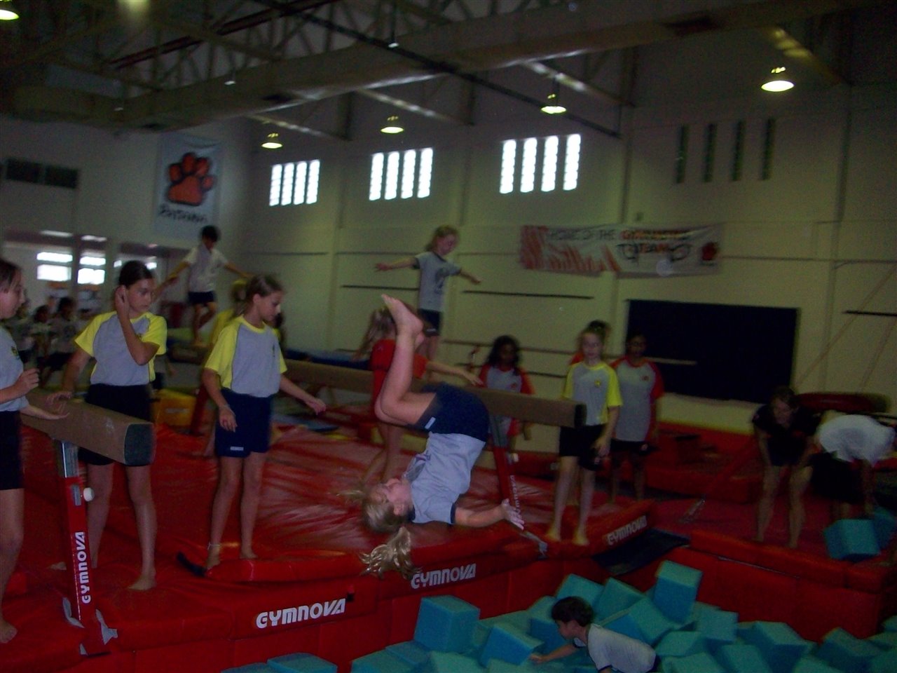 Today we practised our gymnastics and acrobatic skills with Miss Tracey and lots of Year 7 students in the Gymnastics Hall!