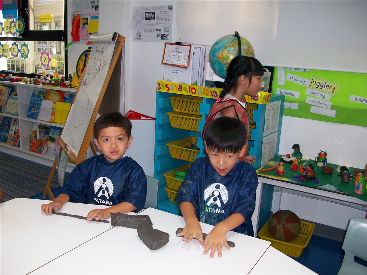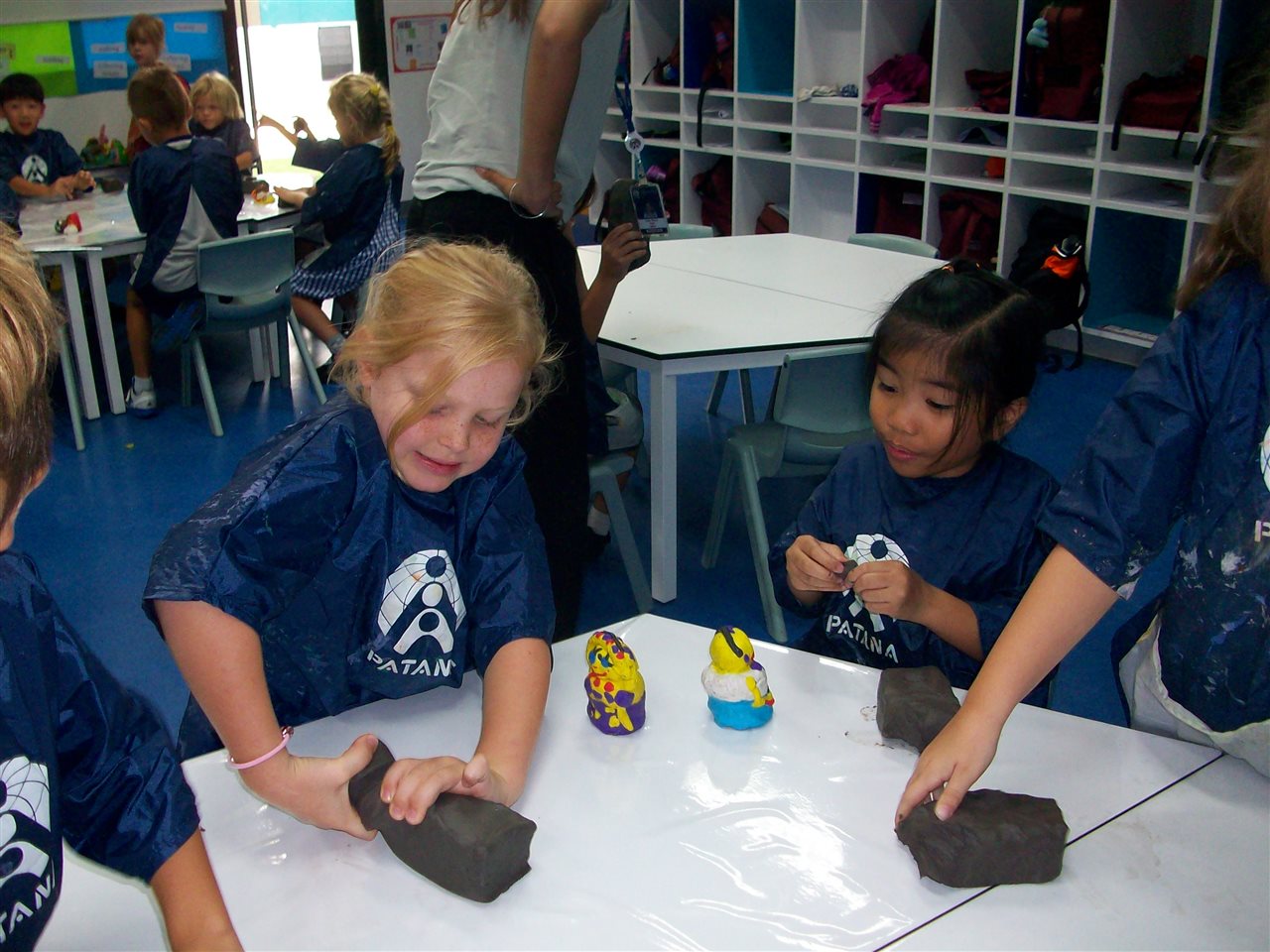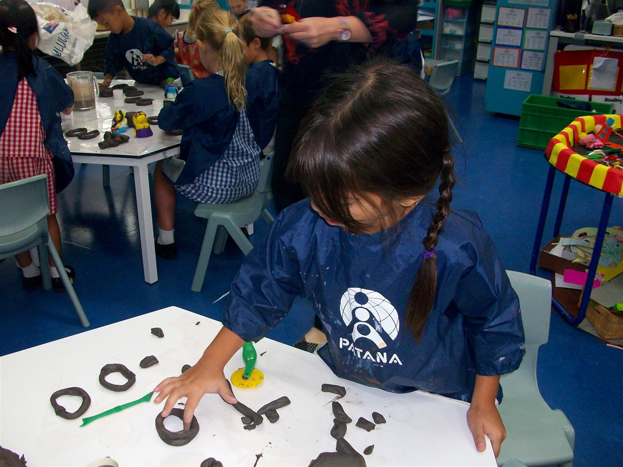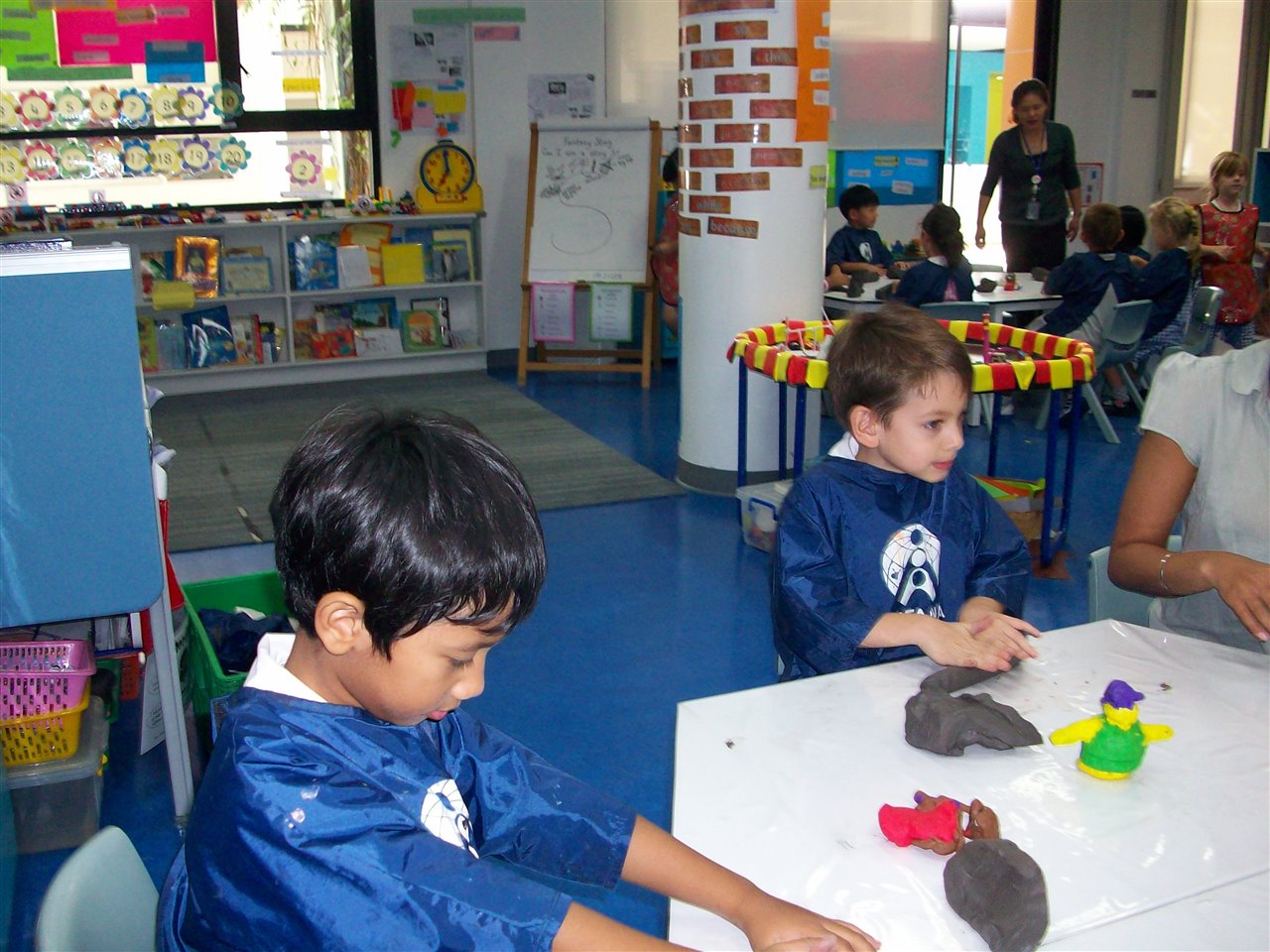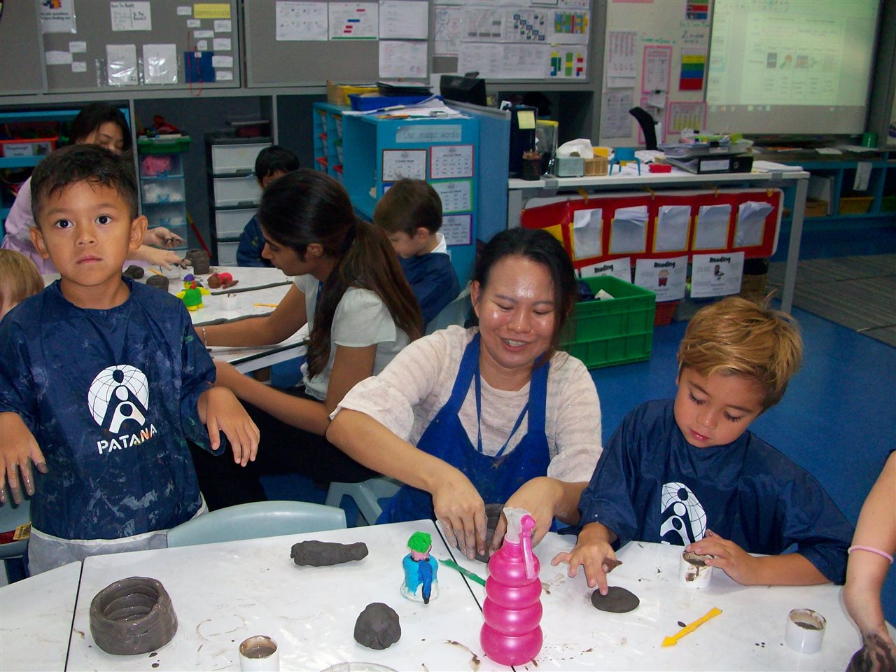 Today the students in 1M and 1B started to make their circus characters out of clay, using the 'donut' method. This entails the students making a series of donut-shaped rings out of clay, then sticking them together with clay glue called slip, then smoothing down the joints. Afterwards we visited the Foundation Stage science Expo!
