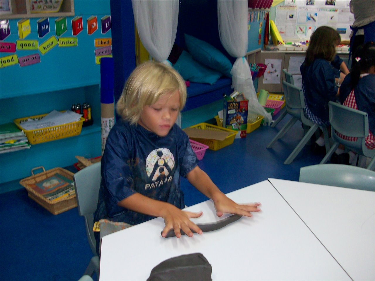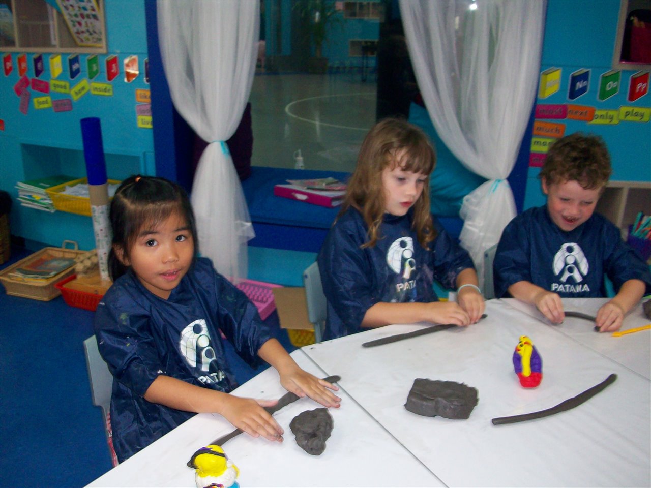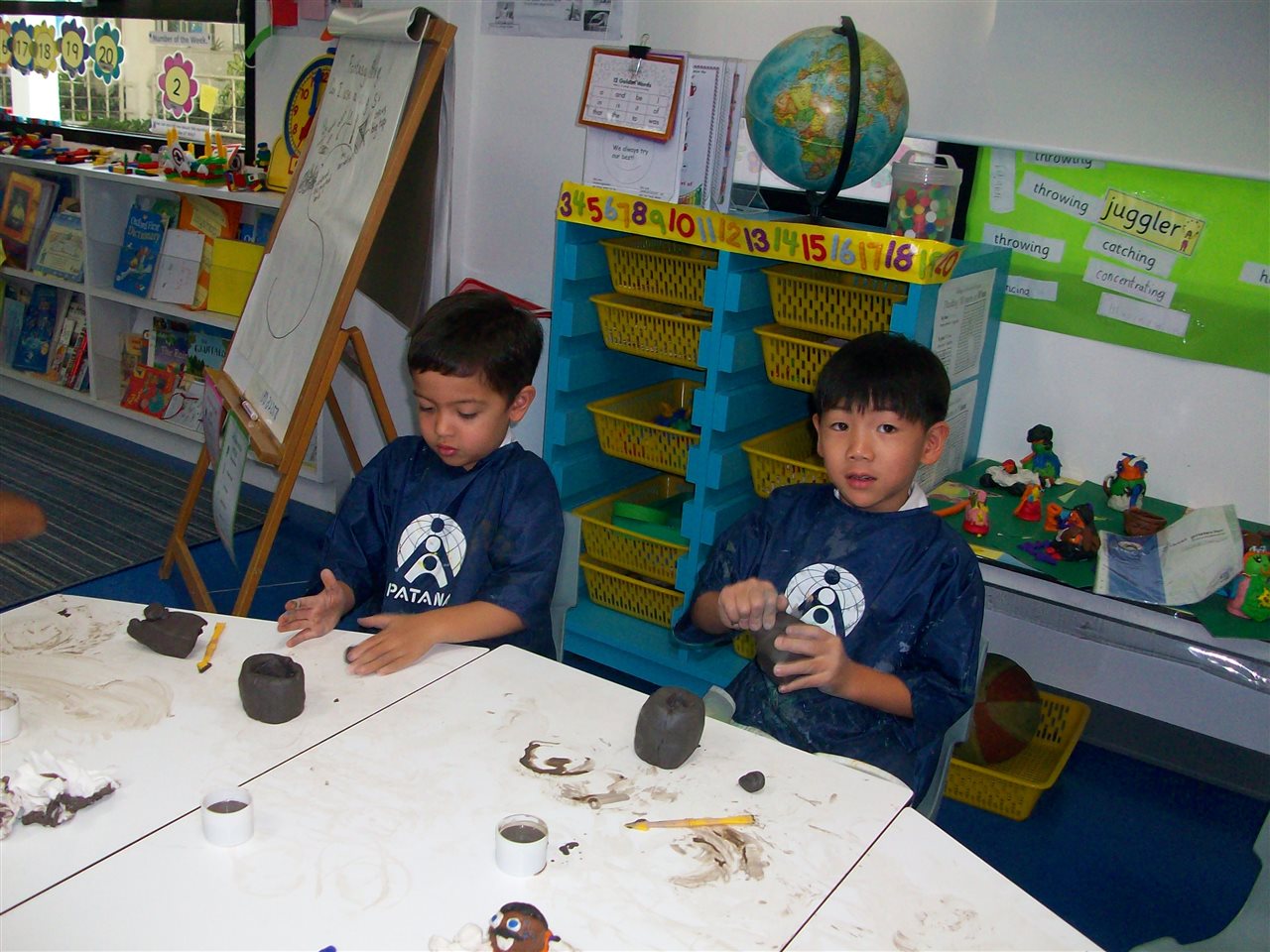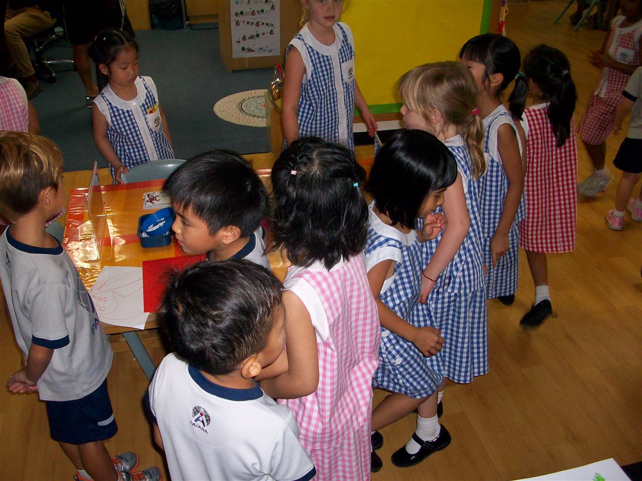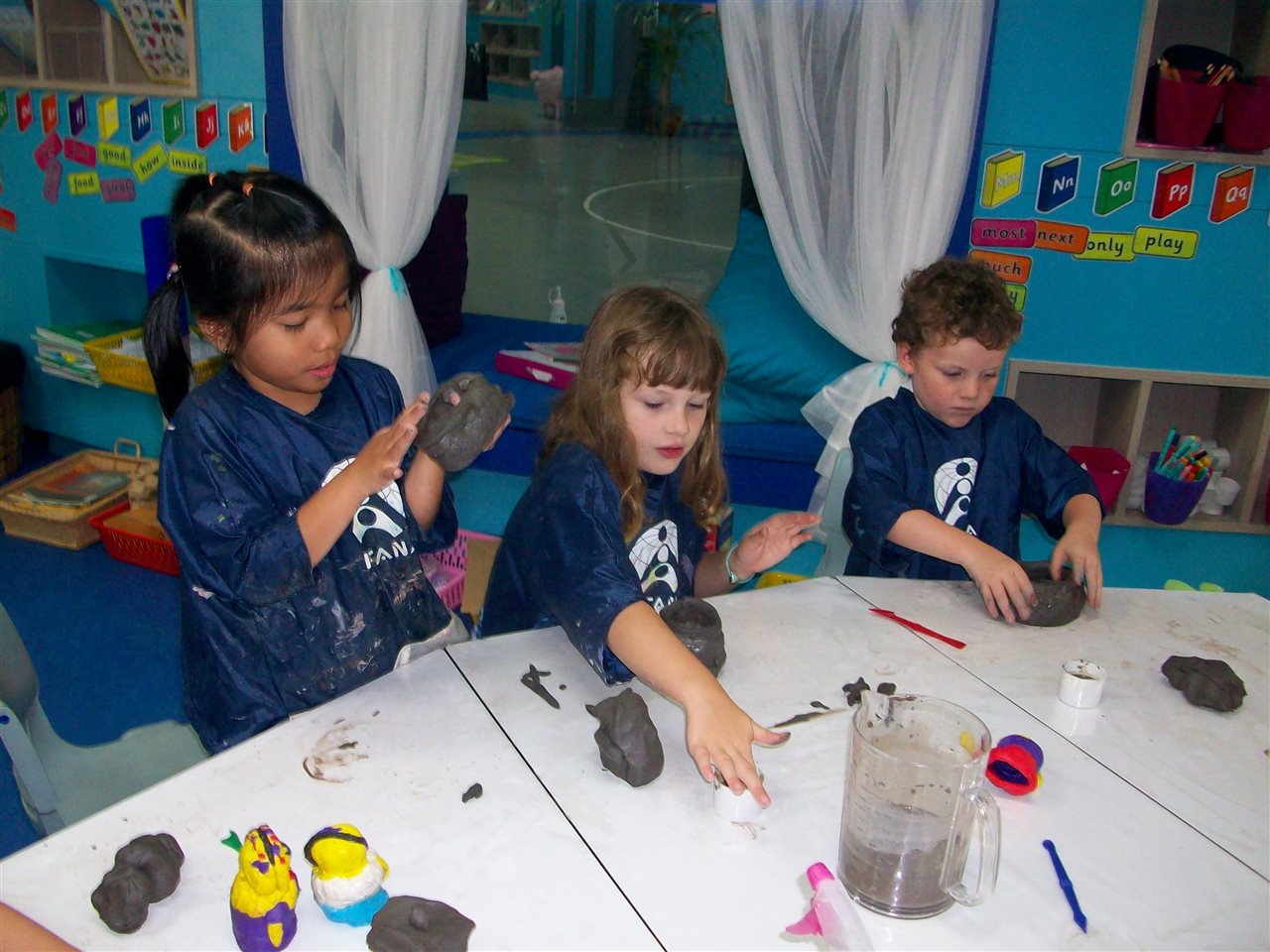 Today the students in 1M and 1B started to make their circus characters out of clay, using the 'donut' method. This entails the students making a series of donut-shaped rings out of clay, then sticking them together with clay glue called slip, then smoothing down the joints. Afterwards we visited the Foundation Stage science Expo!