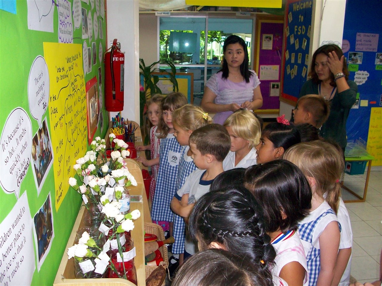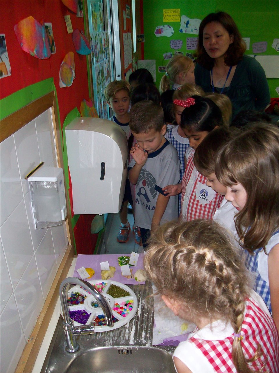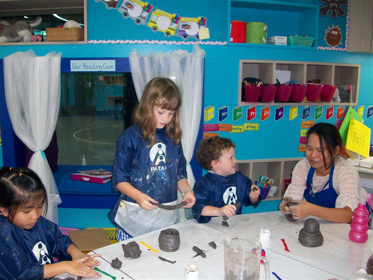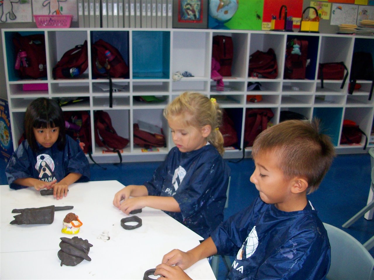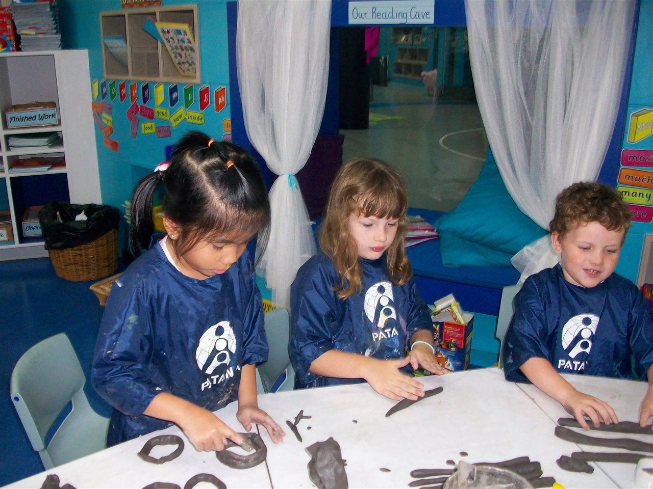 Today the students in 1M and 1B started to make their circus characters out of clay, using the 'donut' method. This entails the students making a series of donut-shaped rings out of clay, then sticking them together with clay glue called slip, then smoothing down the joints. Afterwards we visited the Foundation Stage science Expo!