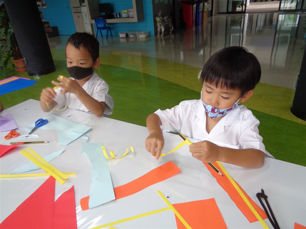 We have been developing our fine motor skills by cutting, weaving and making fabulous dinosaurs.