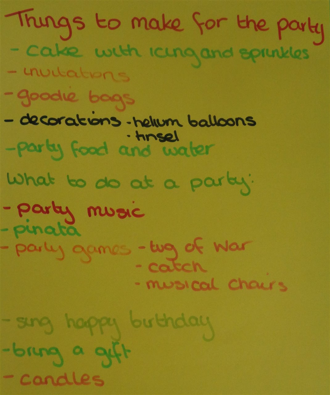 They thought about what they had at their own or friend's birthday parties and what made a good party....
