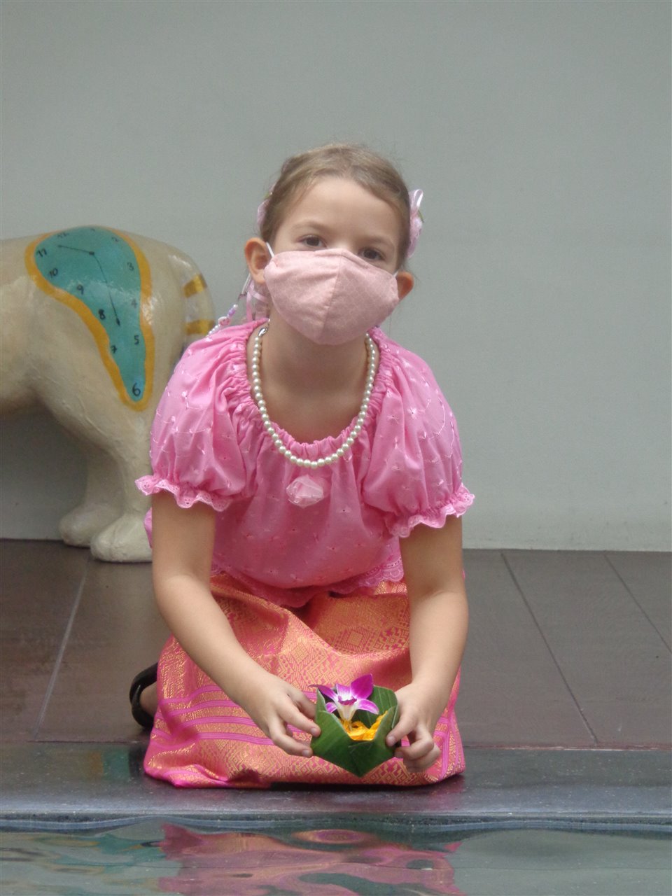 We made krathongs to float on the reflection pool....