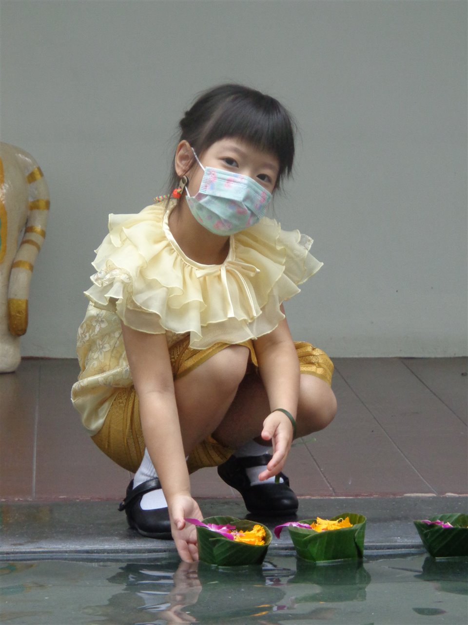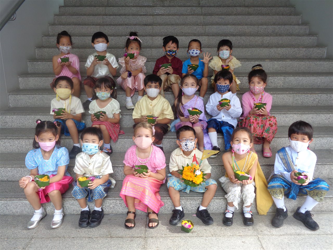 Today we have been celebrating Loy Kratong and came to school dressed in our amazing Thai clothes looking like Princes and Princesses. 'Loy' means to float and 'krathong' is what we float.