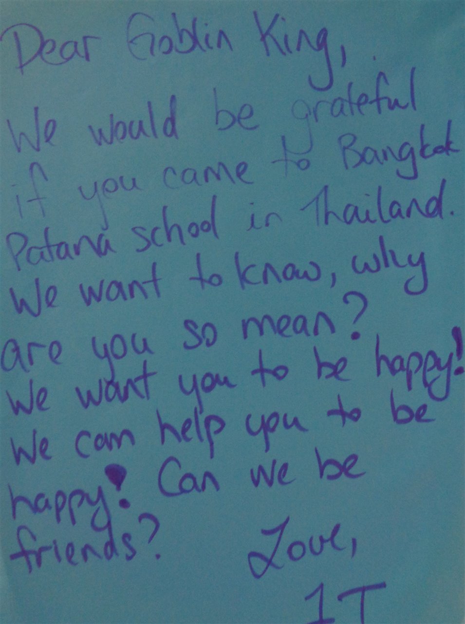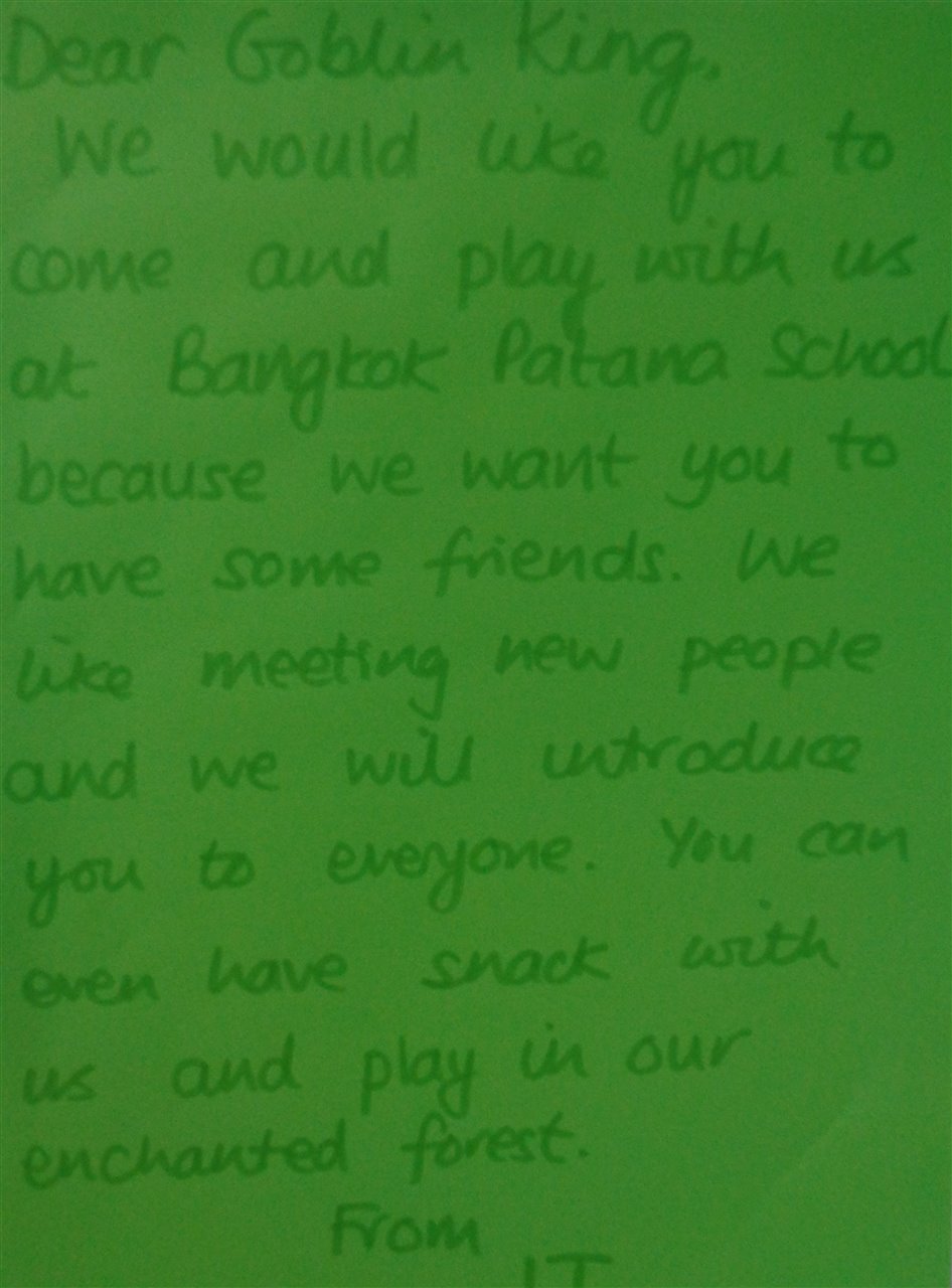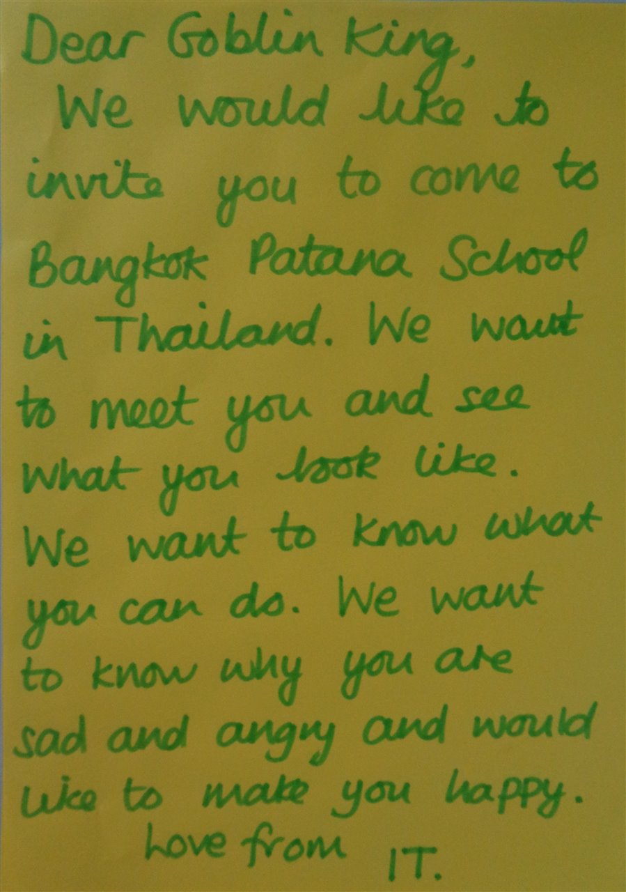 This week there has been an air of excitement in Year 1 as we started to learn a little more about the mysterious Goblin King. On Monday, we learnt that he was angry although we didn't know why and that the fairies wanted to invite him to a party. We decided that perhaps we should invite him to Patana and so wrote letters to him. One group even made a map for him, so that wouldn't get lost.