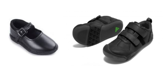 Students wear black shoes that support the whole foot and allow them to be active. School shoes require at least a thick strap to keep the shoe firmly in place. Children can wear lace-ups if they can tie up their laces independently.