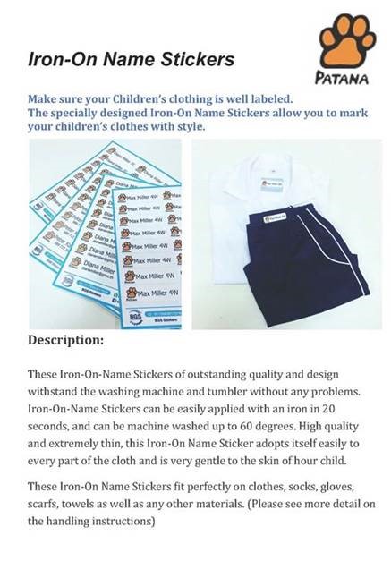 Iron-on name stickers (32 pieces per set) - 350 baht