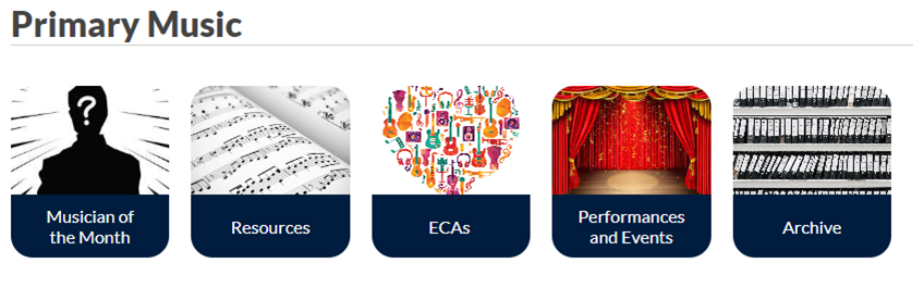 Visit the recently updated Primary Music Blog for lots of information connected to your child’s learning including musician of the month, resources connected to areas of the curriculum, ECA materials, and information about upcoming events.