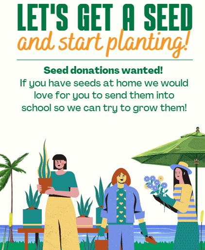 Our students are growing seeds in school in the hope that they can create a green space on the roof of the year 2 building. If you have any seeds at home we would love to use them to see what plants we could nurture and grow.