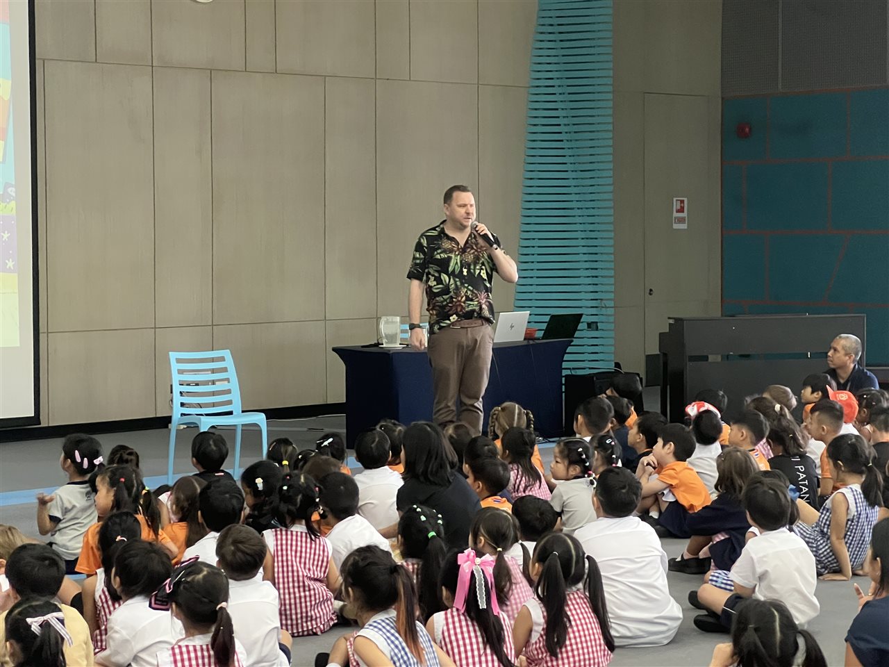 On Saturday, I had the pleasure of attending the Ploenchit Fair—a fantastic community event! Another highlight was welcoming guest speaker Mark Grist to our KS2 assembly. Mark, a former English teacher turned poet, rapper, and author, captivated the students with some incredible performances. We are hoping he will inspire some great writing in the Primary school!