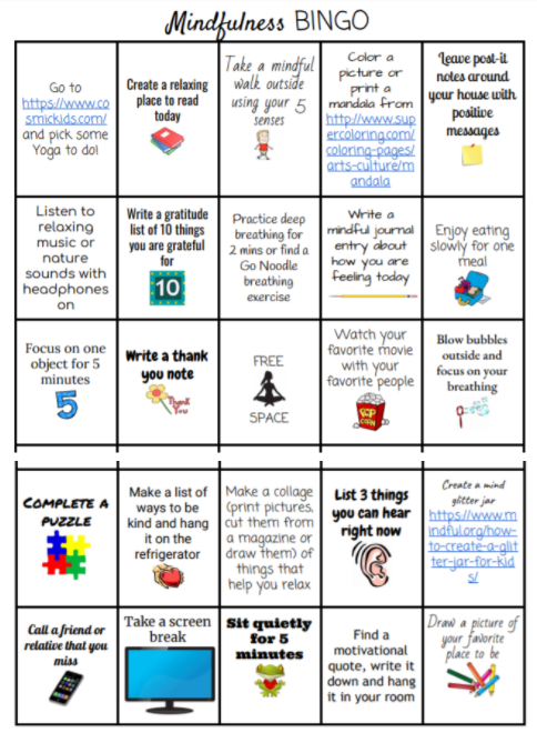 2. Choose a mindful activity from the bingo.