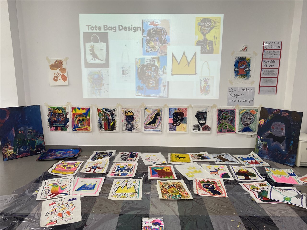 In Year 4, students in their Specialist Art classes learnt about the expressionist artist Jean Michel Basquiat, analysing his unique style. Students then got creative and made their own inspired Basquiat illustrations, portraits and paintings on paper, card, canvas, and fabric.