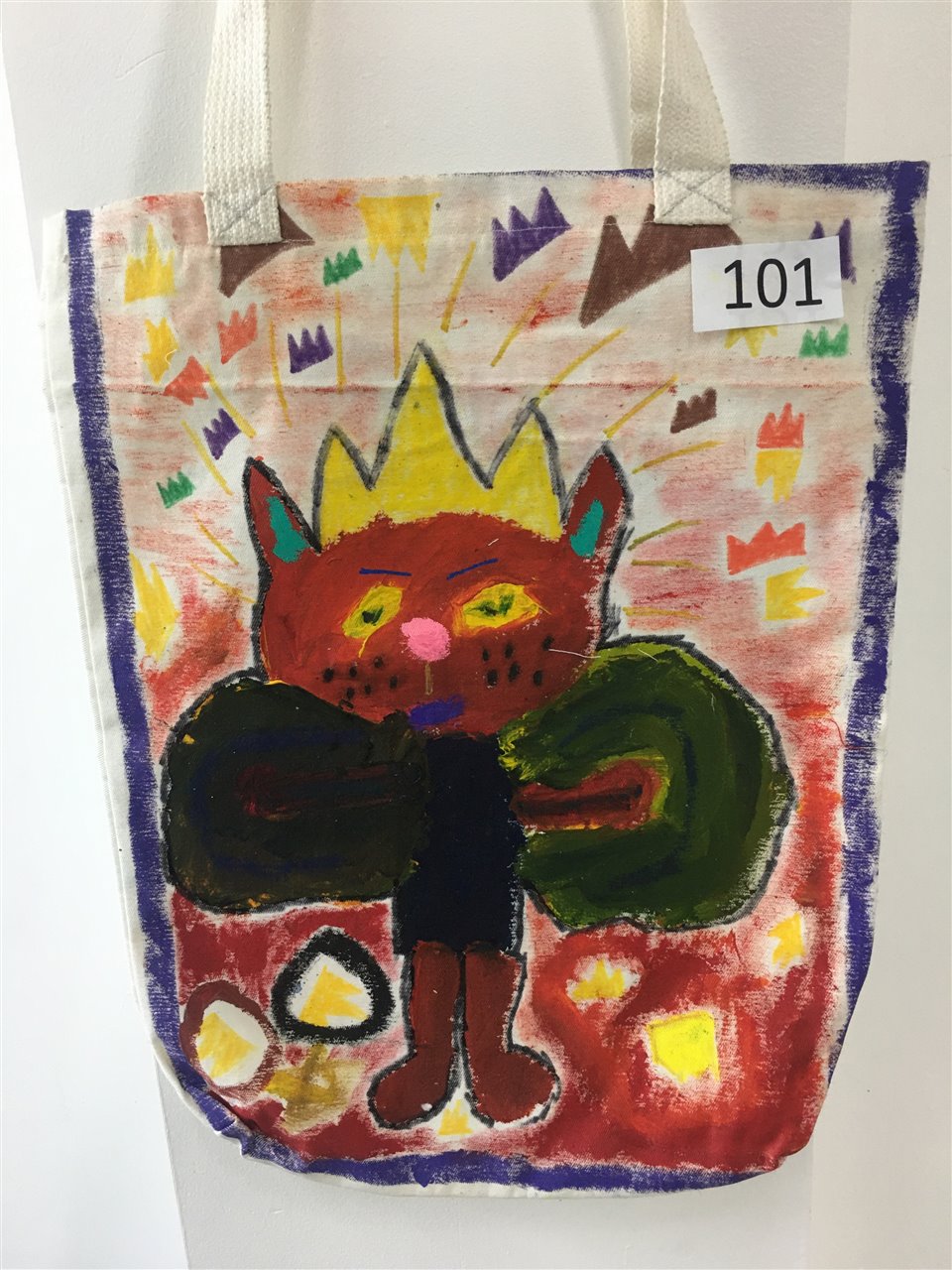 BEAM created these amazing tote bags with the Basquiat inspired fabric designs, and we think they look wonderful!