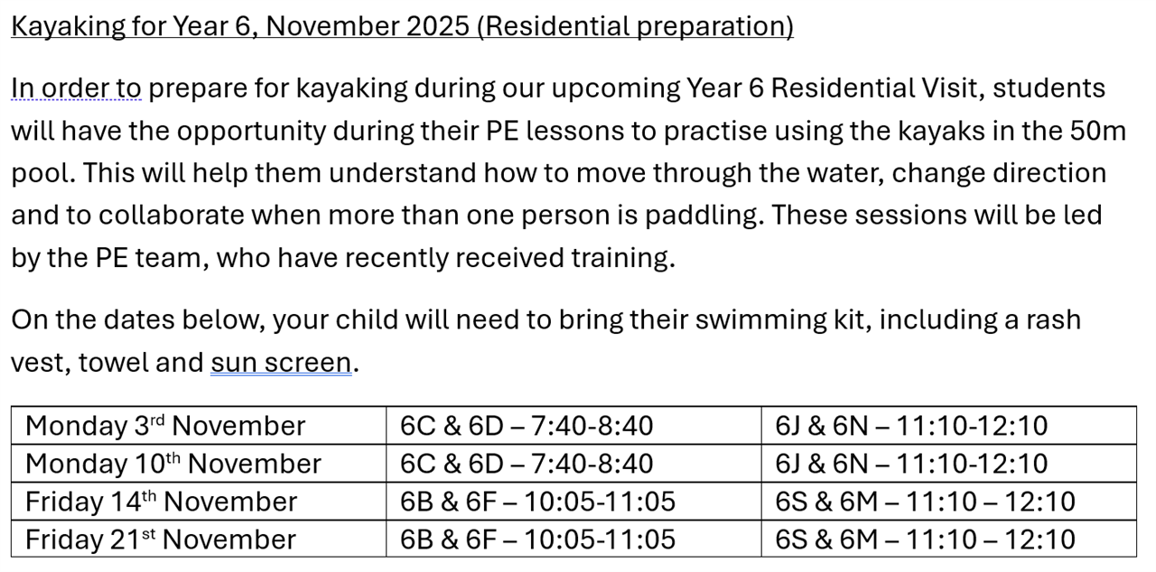 Students should come to school in their PE kit on PE days. If they have swimming for the first lesson, they can wear their swim kit under their uniform. If they have swimming later in the day, we ask that they DO NOT wear their swim kit to school.