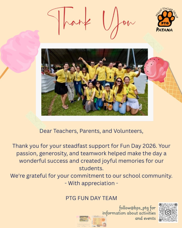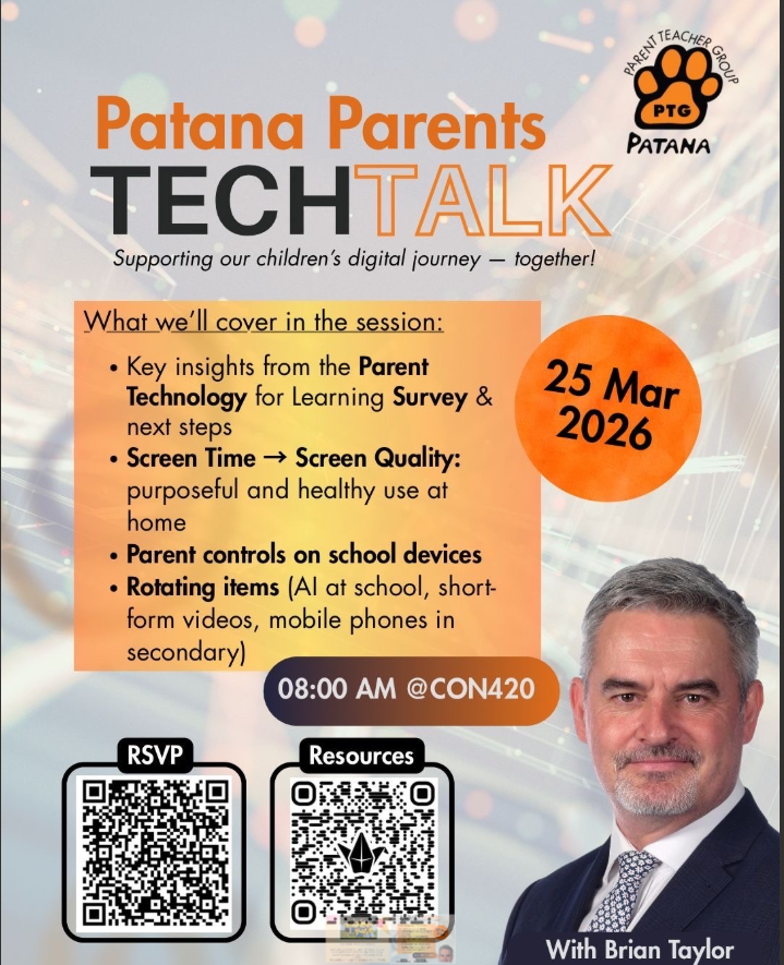| PTG | Year 6 PTG Rep- Inna Matijasevich- ptgy6@patana.ac.th Primary Representative - Bharati Lachmandas ptgprimary@patana.ac.th | |
