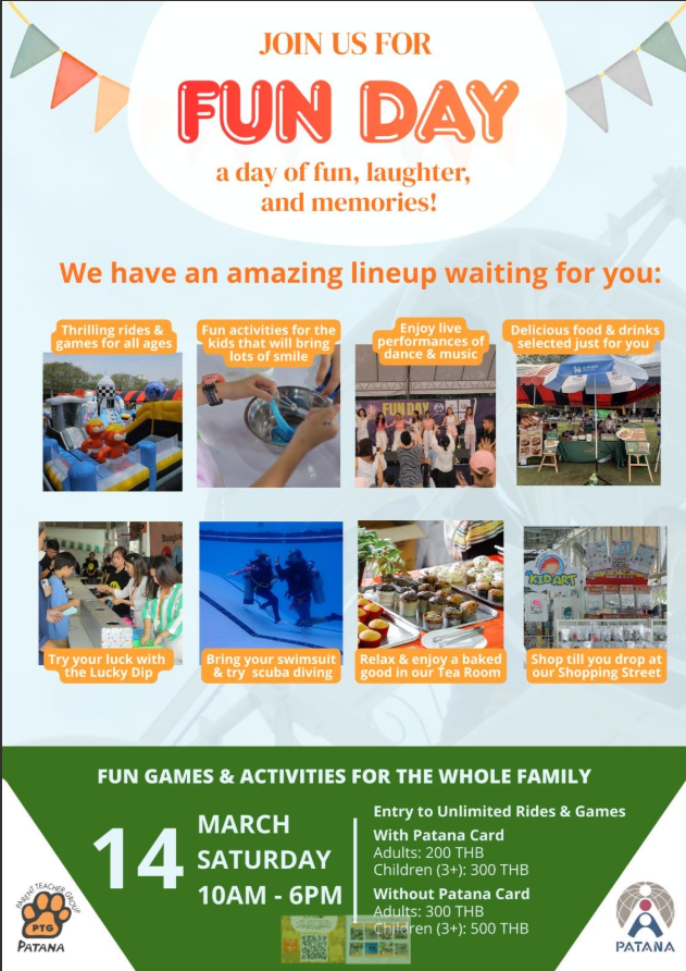 | PTG | Year 6 PTG Rep- Inna Matijasevich- ptgy6@patana.ac.th Primary Representative - Bharati Lachmandas ptgprimary@patana.ac.th | |
